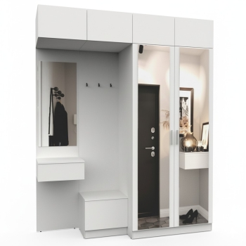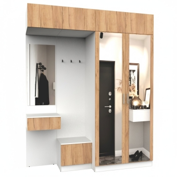 Простая и компактная прихожая вместительна и функциональна, позволит разместить все необходимые вещи: обувь, верхнюю одежду, головные уборы и различные мелкие вещи. Благодаря гармоничному сочетанию цветов прихожая создаст в вашей квартире ощущение уюта, тепла и комфорта.