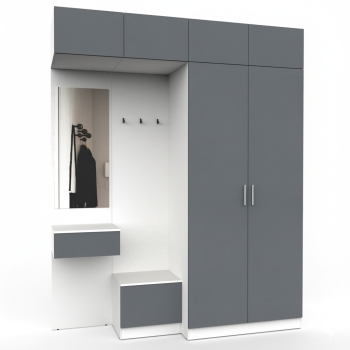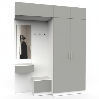 Простая и компактная прихожая вместительна и функциональна, позволит разместить все необходимые вещи: обувь, верхнюю одежду, головные уборы и различные мелкие вещи. Благодаря гармоничному сочетанию цветов прихожая создаст в вашей квартире ощущение уюта, тепла и комфорта.