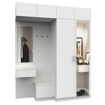 Простая и компактная прихожая вместительна и функциональна, позволит разместить все необходимые вещи: обувь, верхнюю одежду, головные уборы и различные мелкие вещи. Благодаря гармоничному сочетанию цветов прихожая создаст в вашей квартире ощущение уюта, тепла и комфорта.
