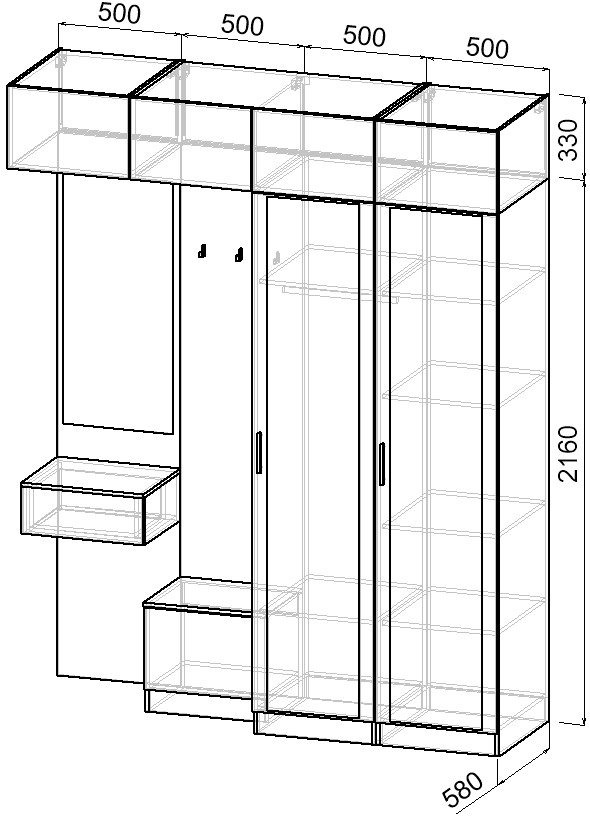 Набор мебели для прихожей "Марсель-261" МР 01-261 В2490 Ш2000 Г580 (ЛДСП Графит серый)
