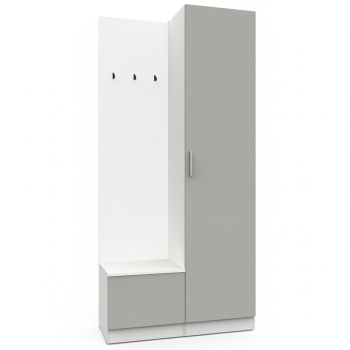 Простая и компактная прихожая вместительна и функциональна, позволит разместить все необходимые вещи: обувь, верхнюю одежду, головные уборы и различные мелкие вещи. Благодаря гармоничному сочетанию цветов прихожая создаст в вашей квартире ощущение уюта, тепла и комфорта.