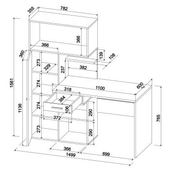 Линейная, С полками, Со столом, Со шкафом, Шуфляды