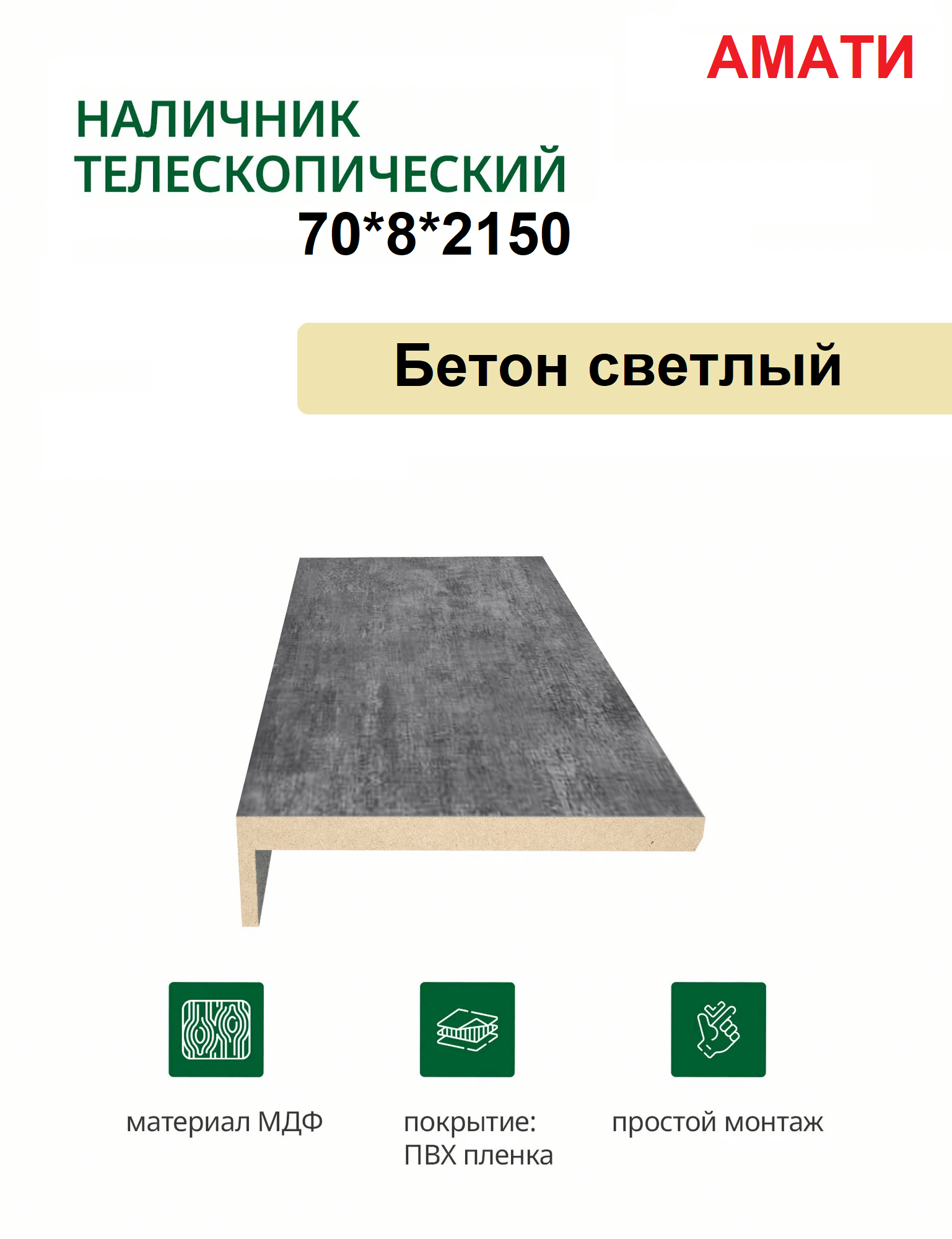 Наличник телескопический Амати 70х8х2150 (Бетон Светлый)