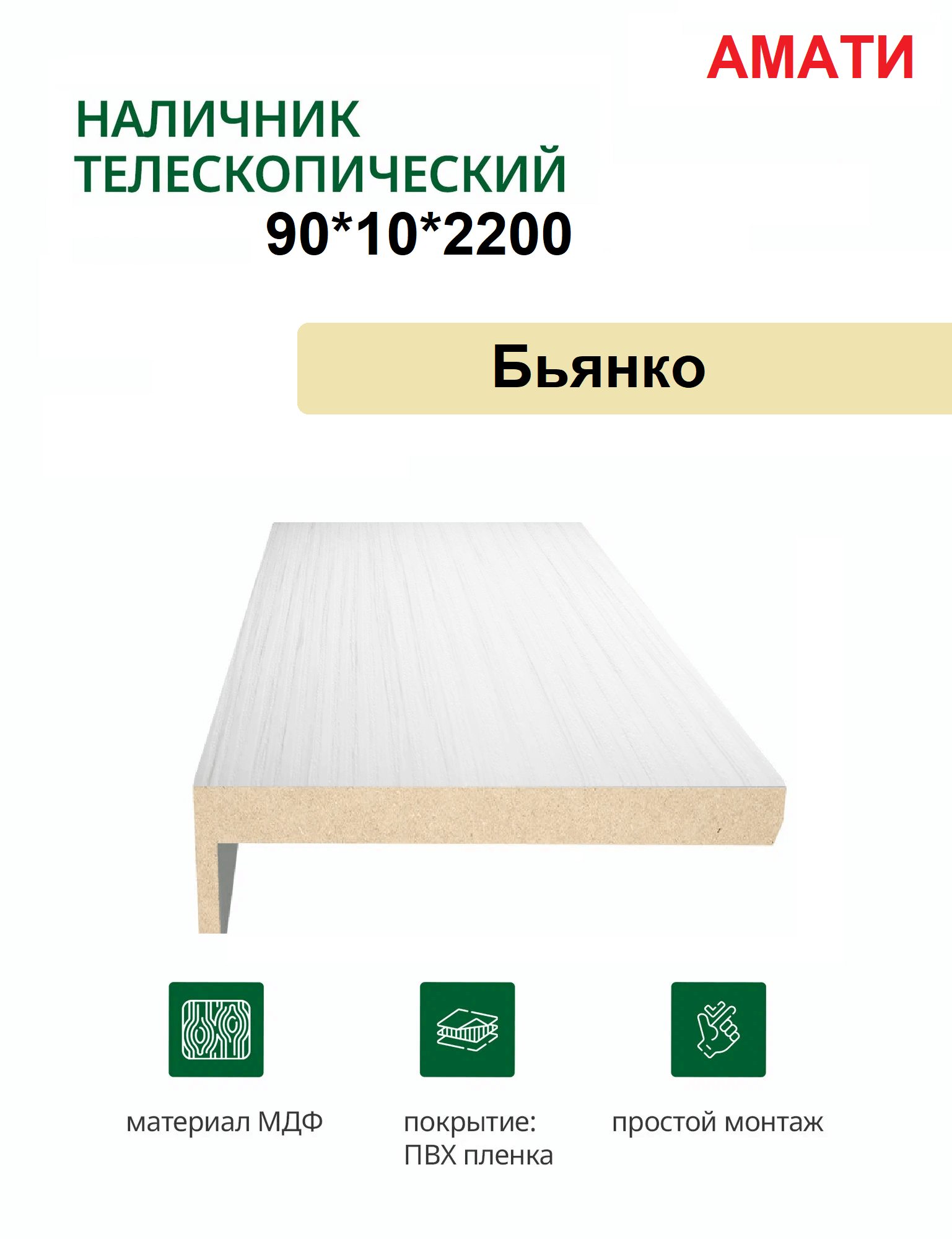 Наличник телескопический Амати 90х10х2150 (Бьянко, белый)