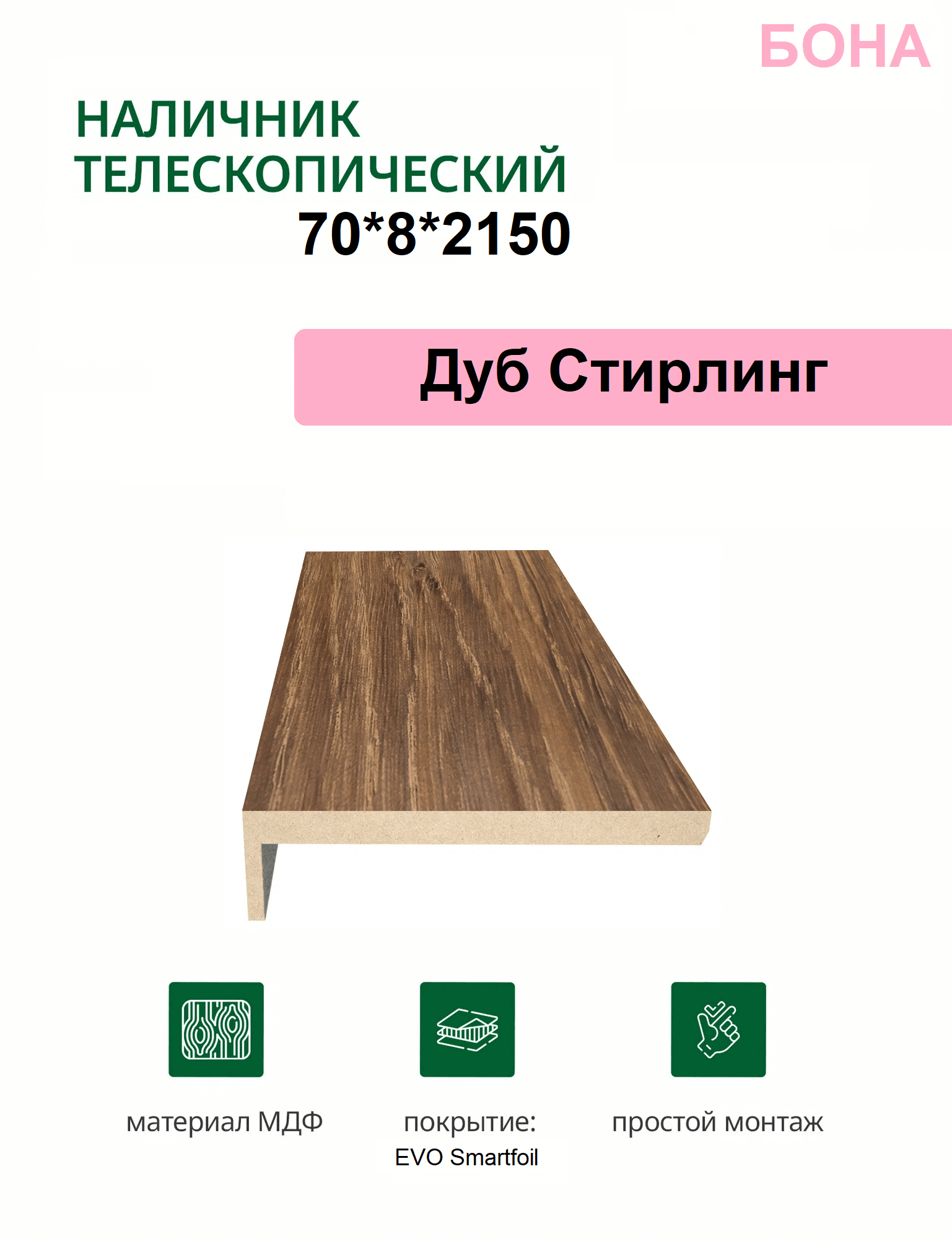 Наличник телескопический Бона 70х8х2150 (Дуб Стирлинг)