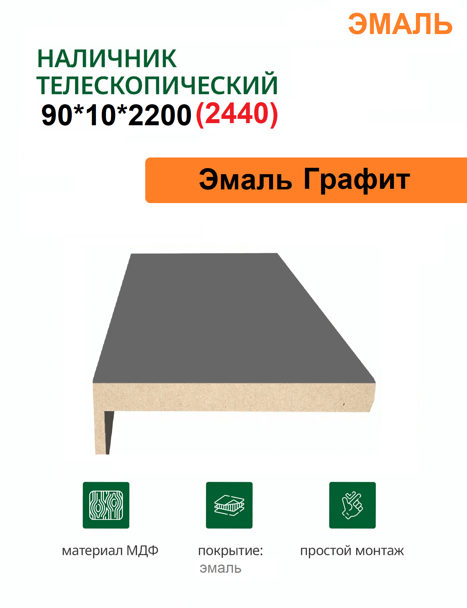 Наличник телескопический Эмаль 90х10х2150 (Графит)