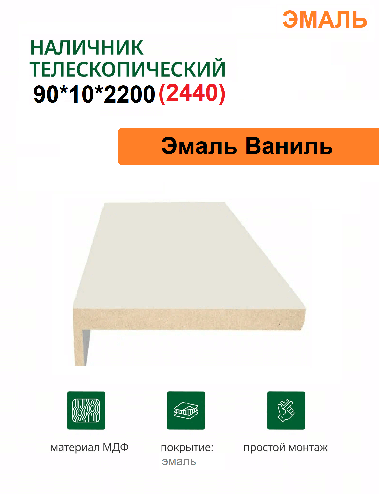 Наличник телескопический Эмаль 90х10х2150 (Ваниль)