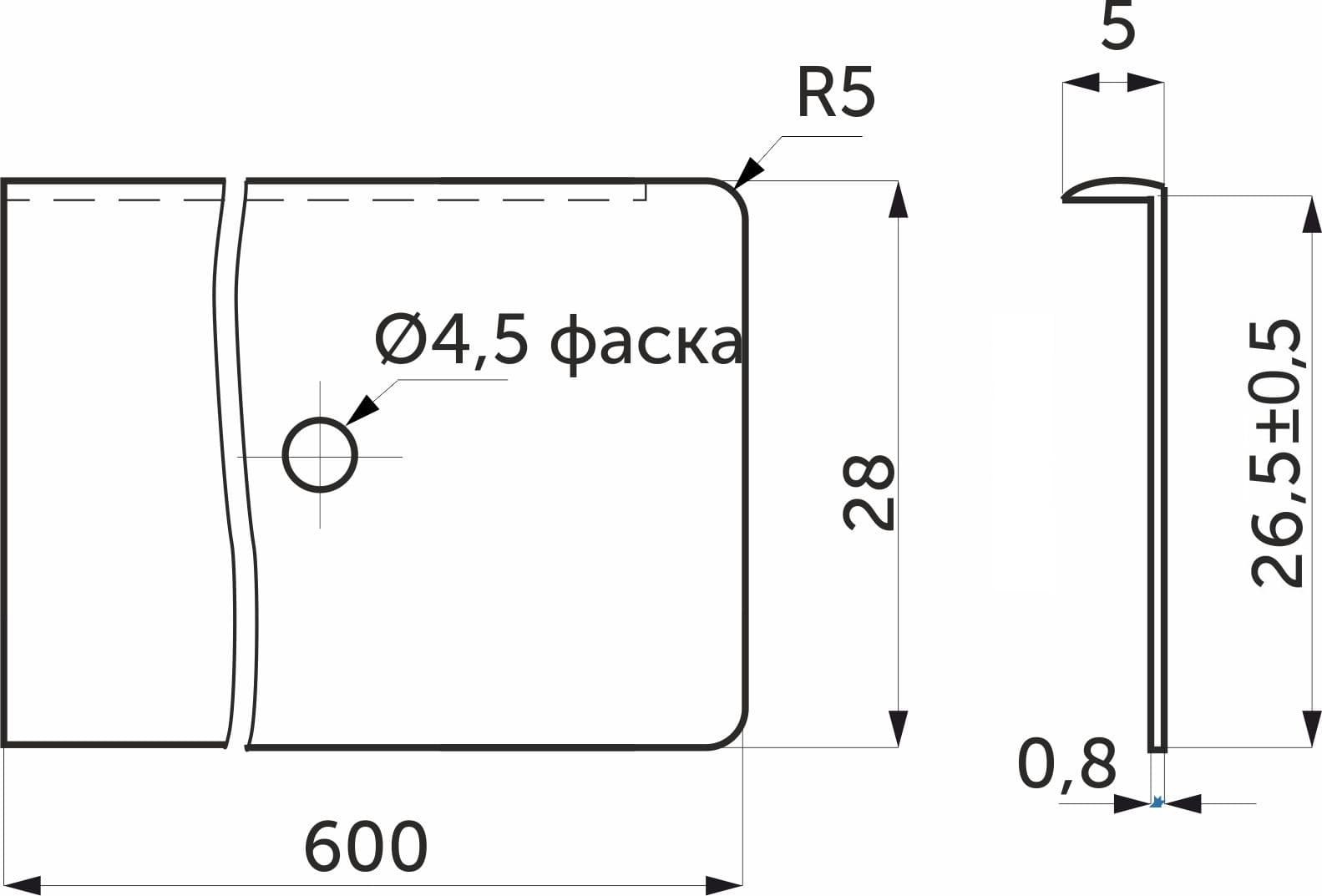 Планка торцевая к столешнице 26мм Левая (код 22535)