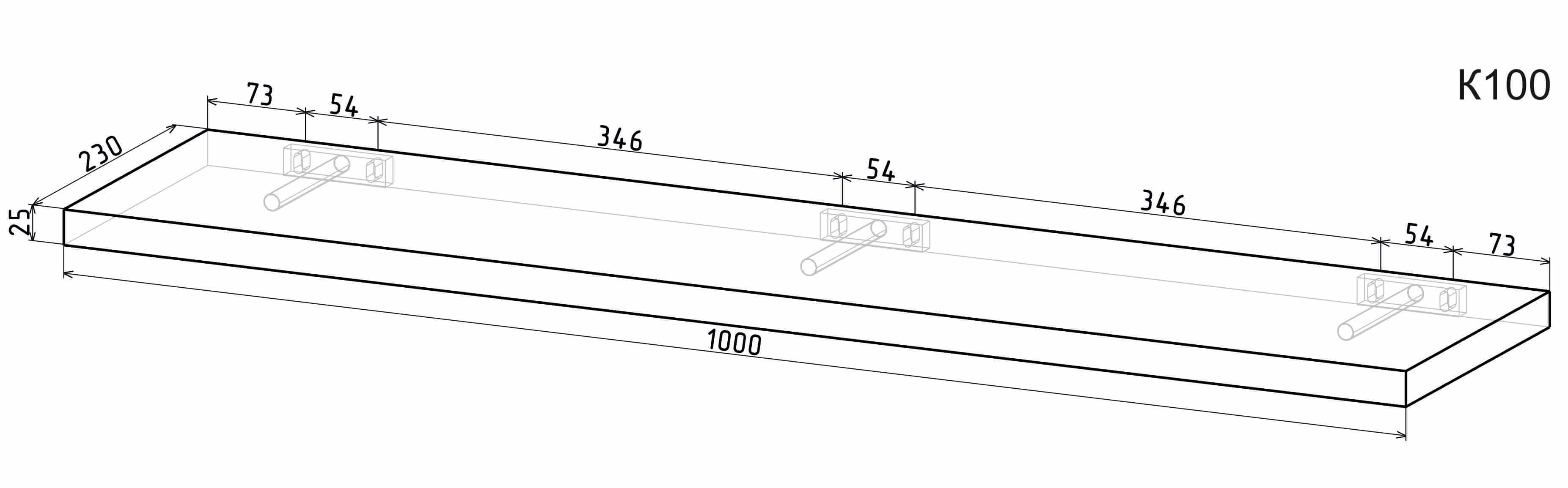 Полка К100 (Дуб Стирлинг) Ш1000 В25 Г230
