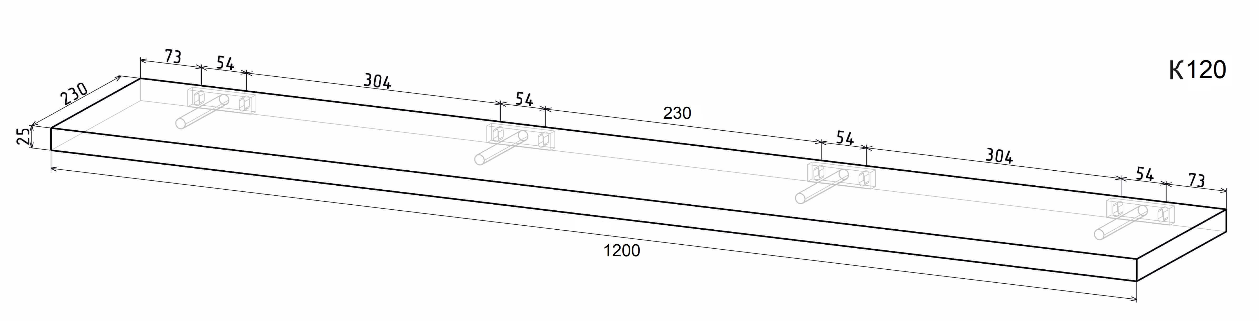 Полка К120 (Дуб Стирлинг) Ш1200 В25 Г230