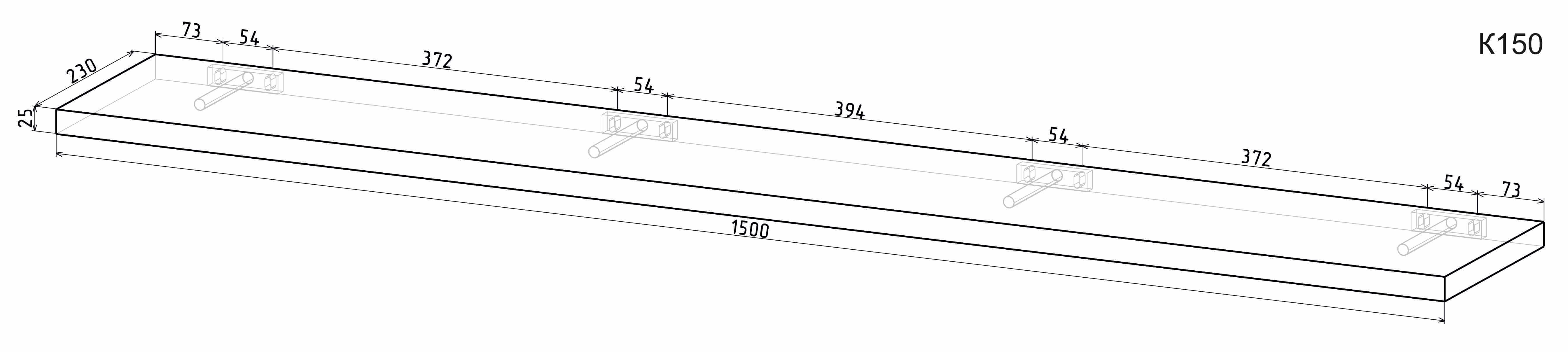 Полка К150 (Дуб Стирлинг) Ш1500 В25 Г230