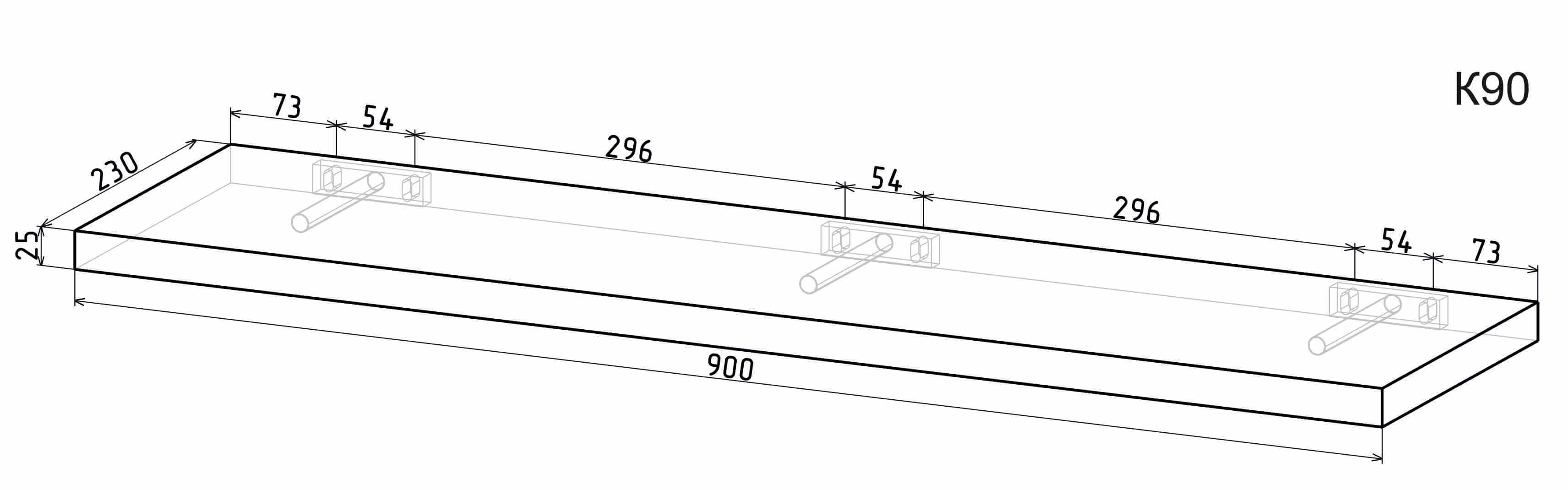 Полка К90 (Дуб Стирлинг) Ш900 В25 Г230