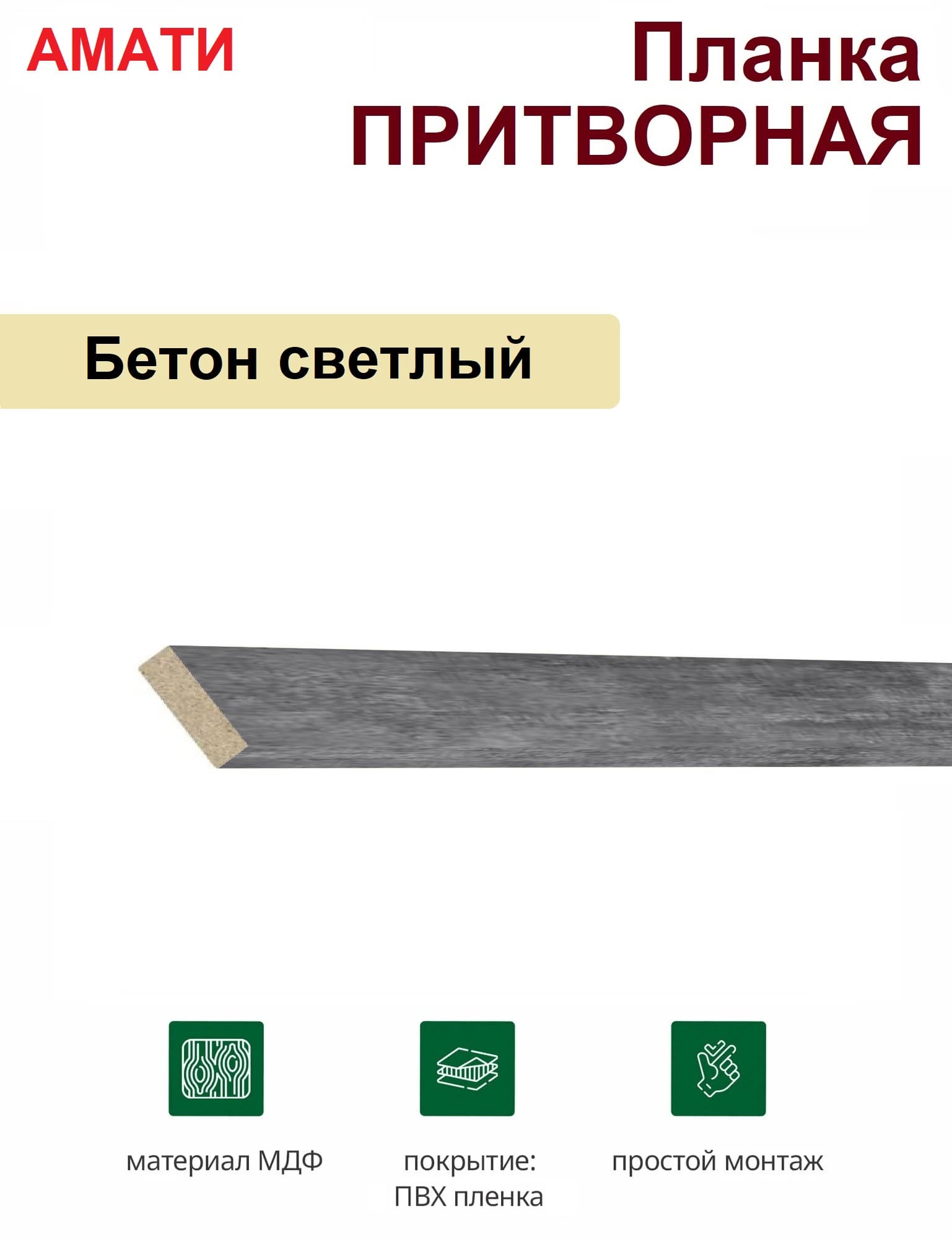 Притворная планка Амати 34х8х2070 (Бетон Светлый)