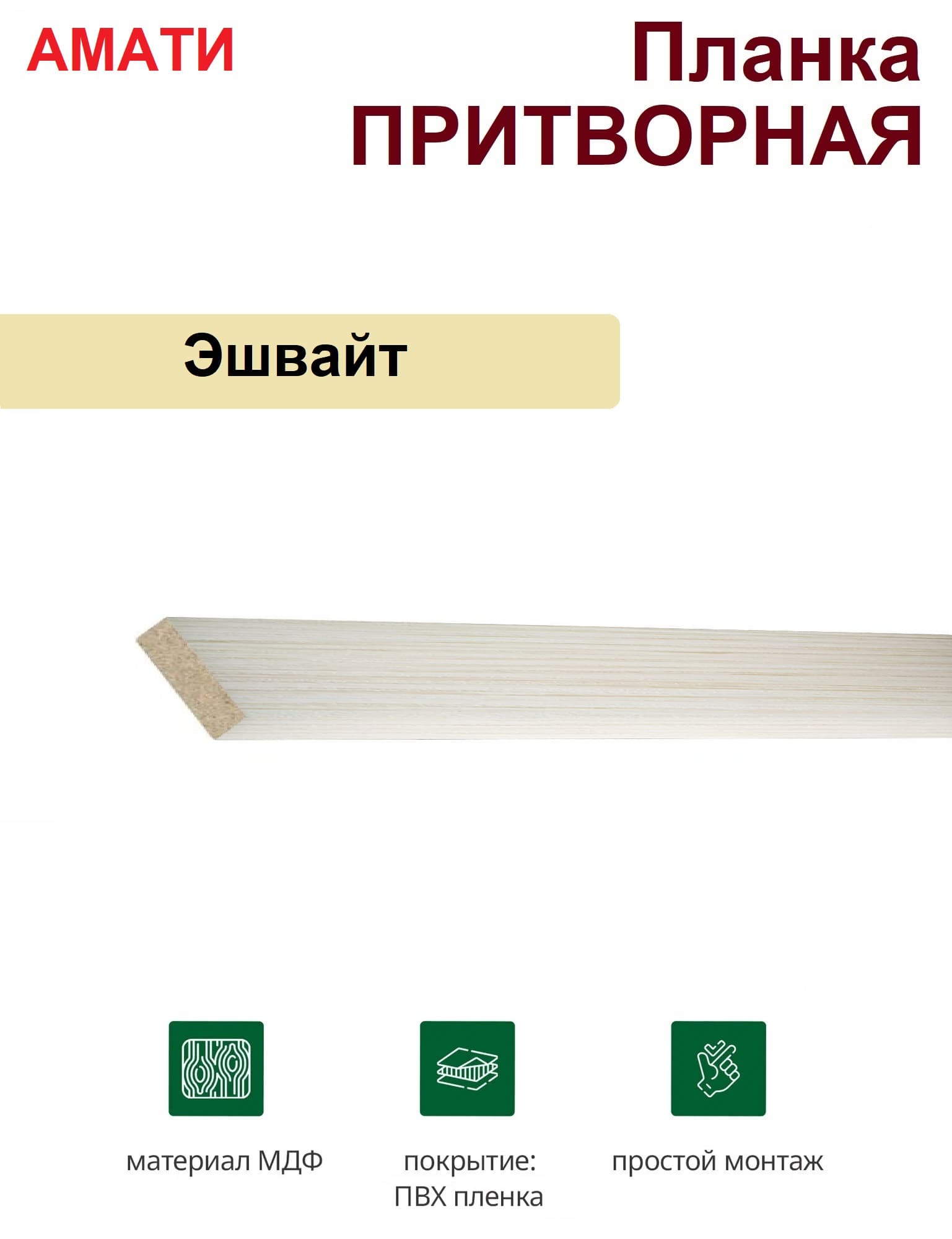 Притворная планка Амати 34х8х2070 (Эшвайт)