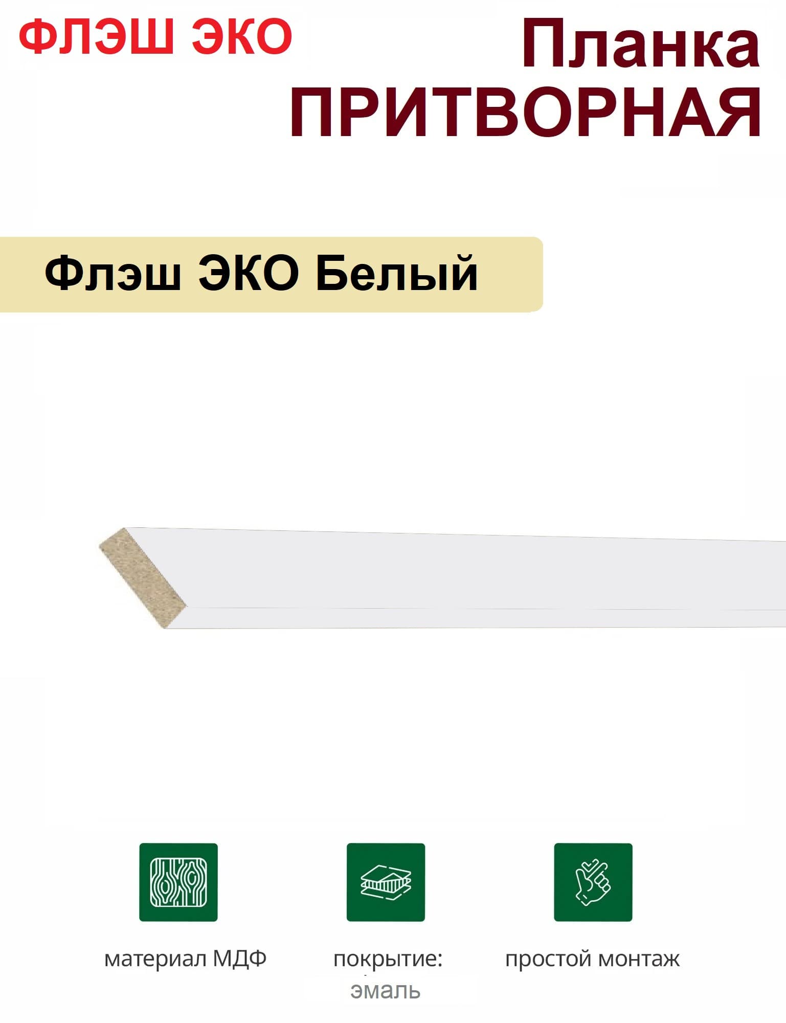 Притворная планка Флэш ЭКО 34х8х2070 (Белый, гладкий)