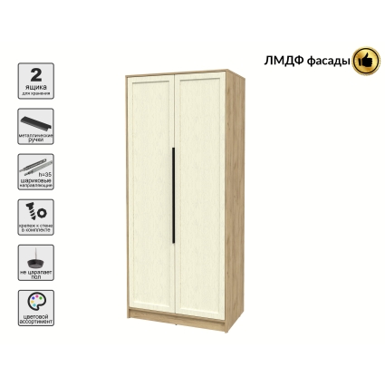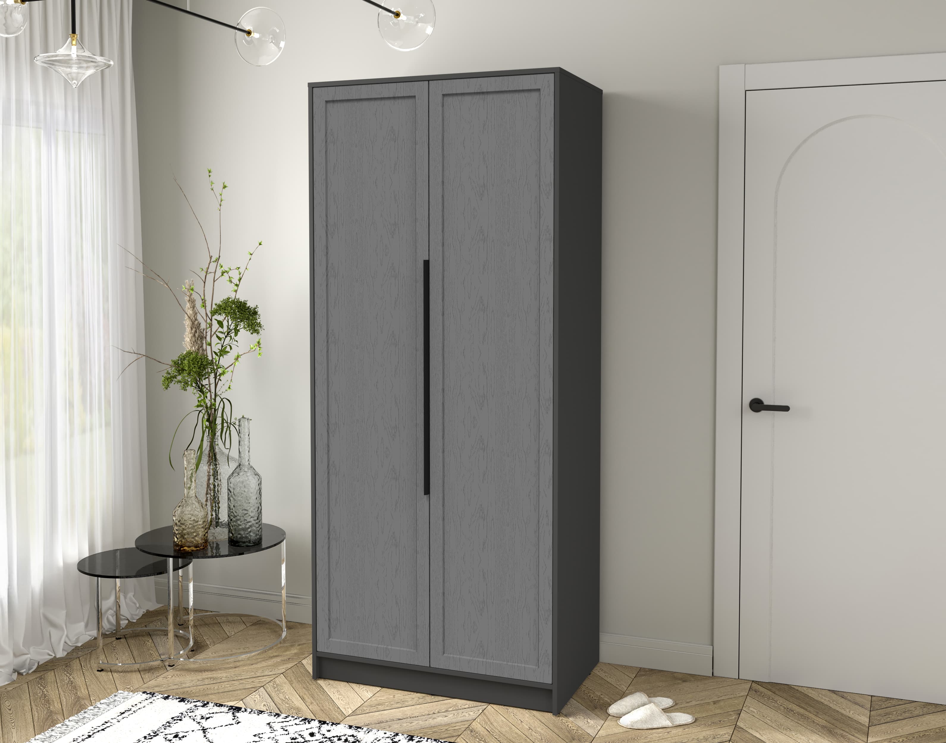 Шкаф распашной Тренд КТ-Ш2 (Антрацит ЛДСП/ Дуб серый ЛМДФ) Ш918 В2128 Г547