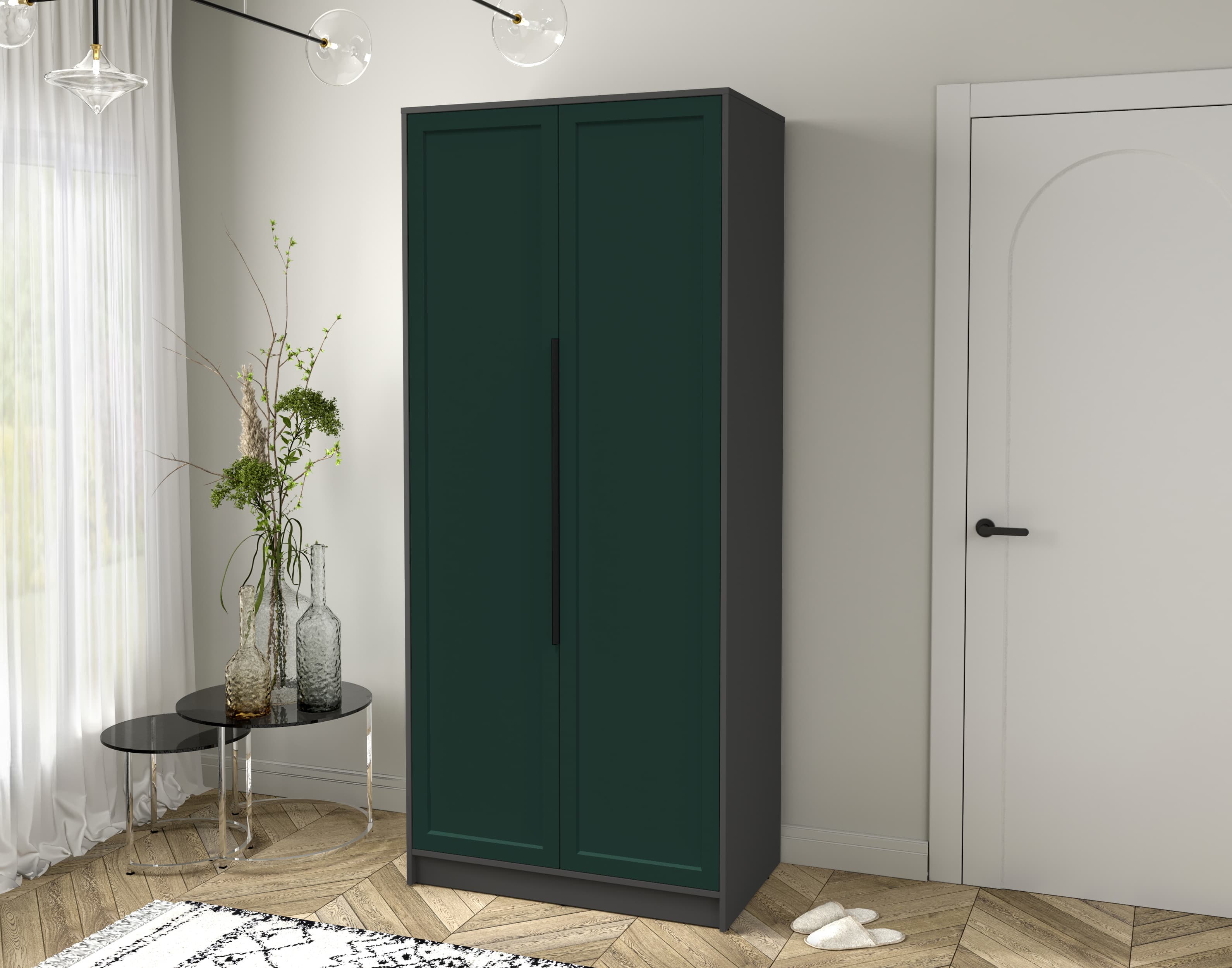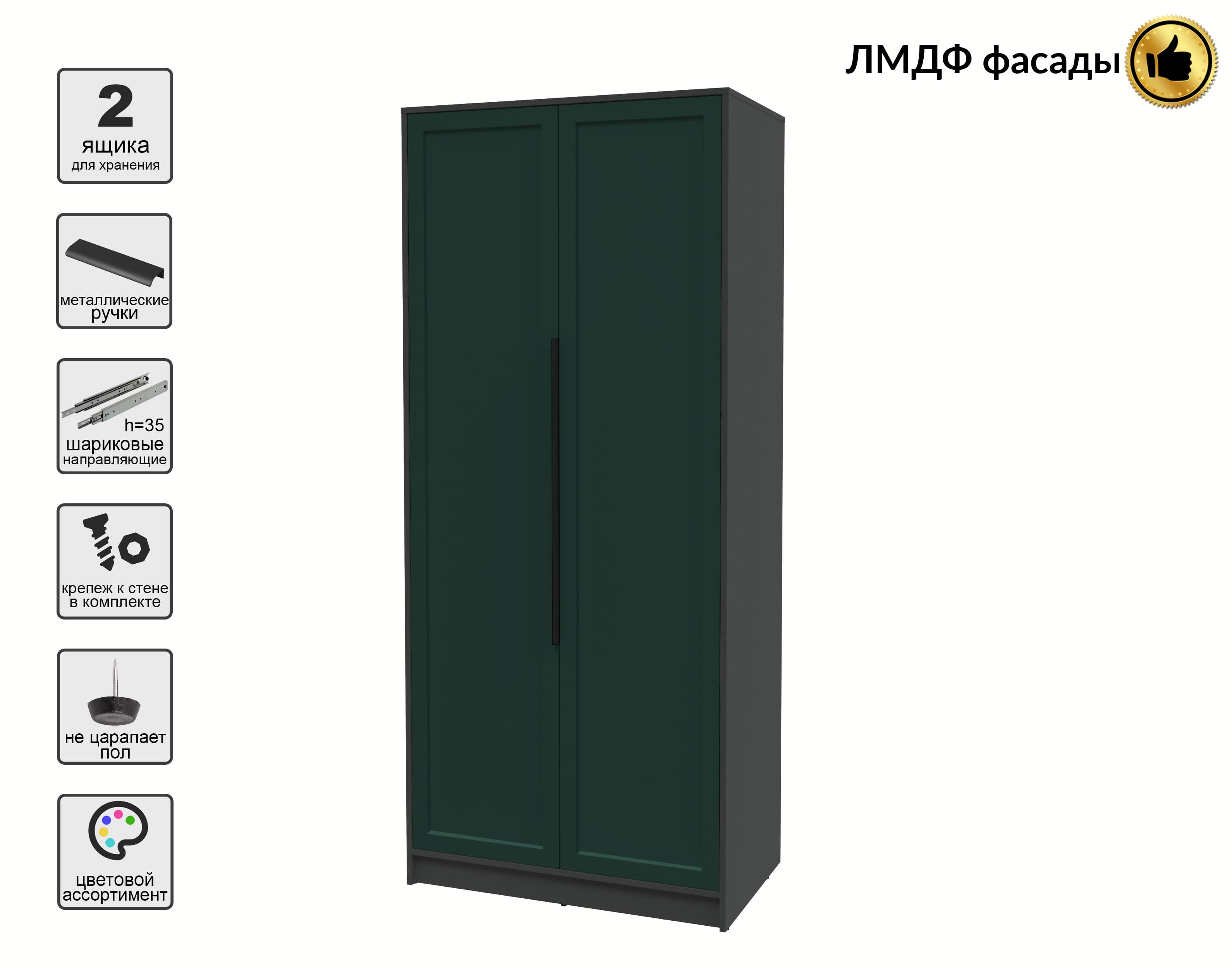Шкаф распашной Тренд КТ-Ш2 (Антрацит ЛДСП/ Изумруд ЛМДФ) Ш918 В2128 Г547