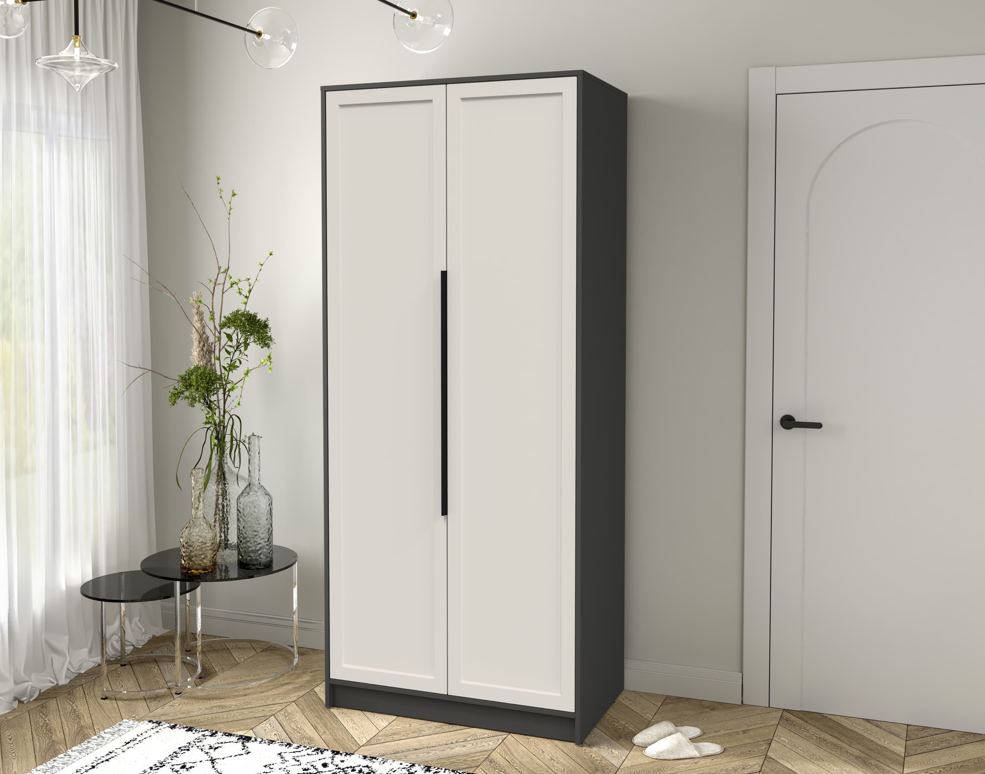 Шкаф распашной Тренд КТ-Ш2 (Антрацит ЛДСП/ Кашемир ЛМДФ) Ш918 В2128 Г547