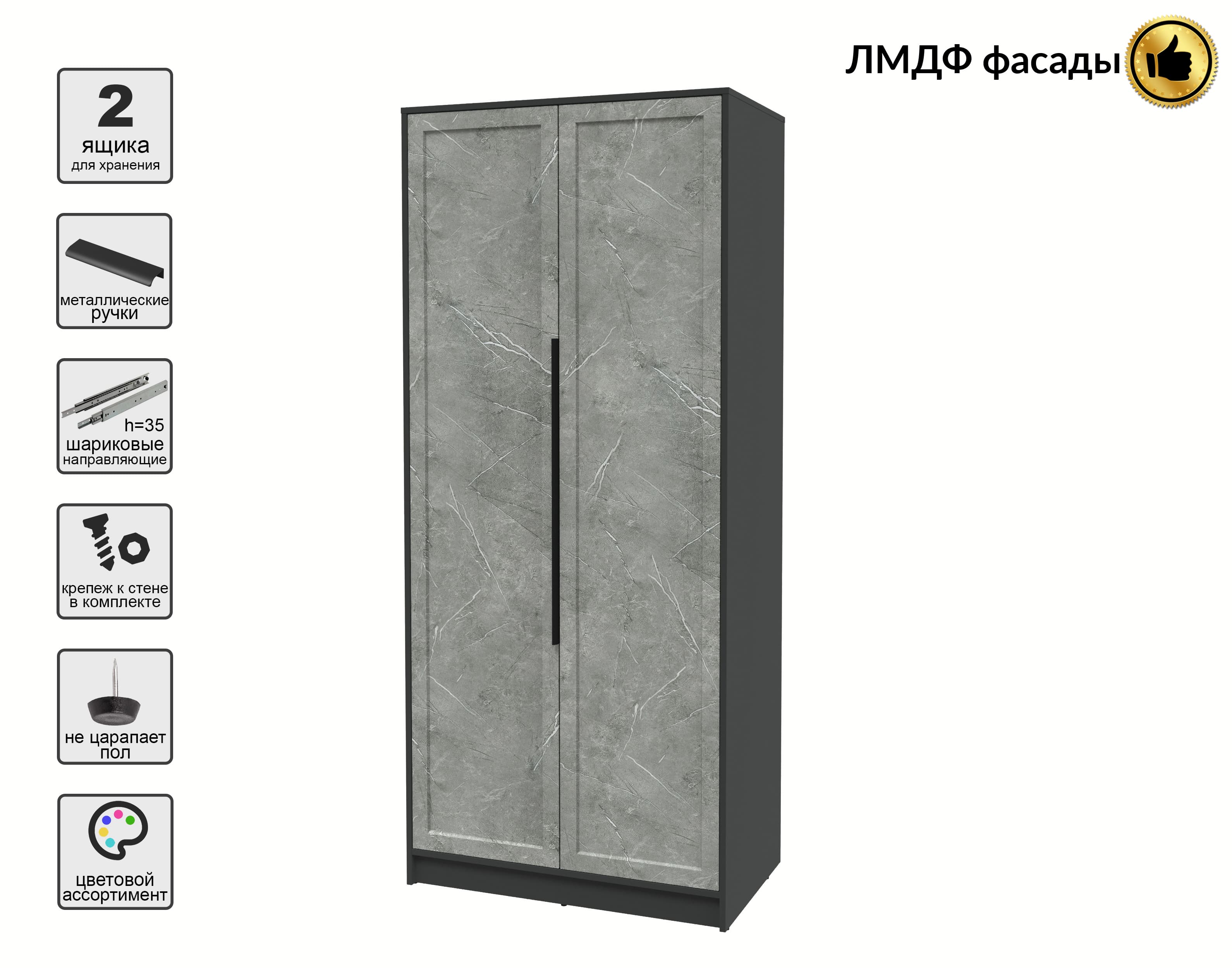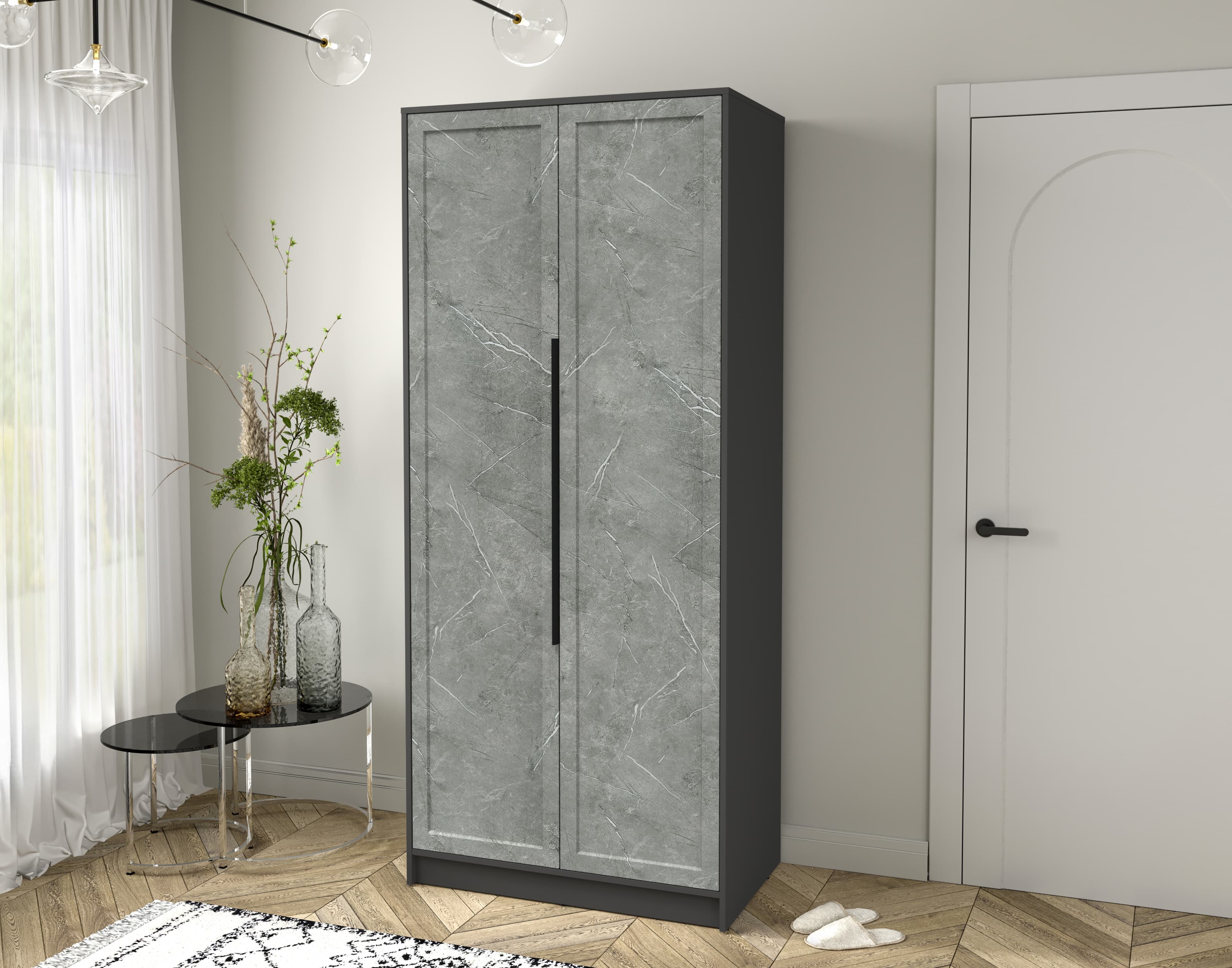 Шкаф распашной Тренд КТ-Ш2 (Антрацит ЛДСП/ Керамика ЛМДФ) Ш918 В2128 Г547