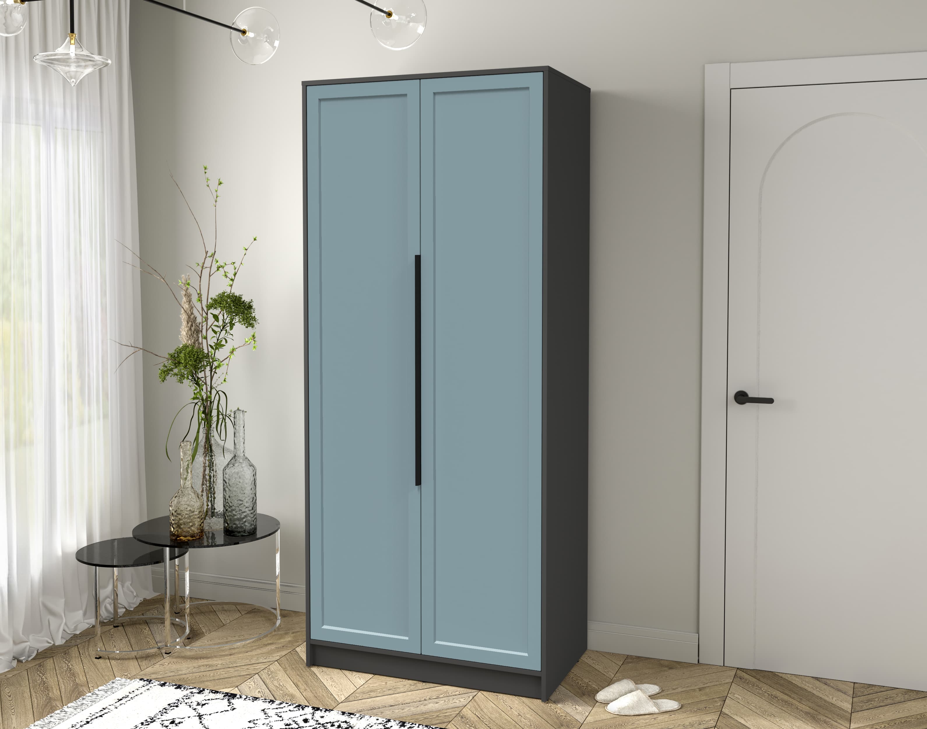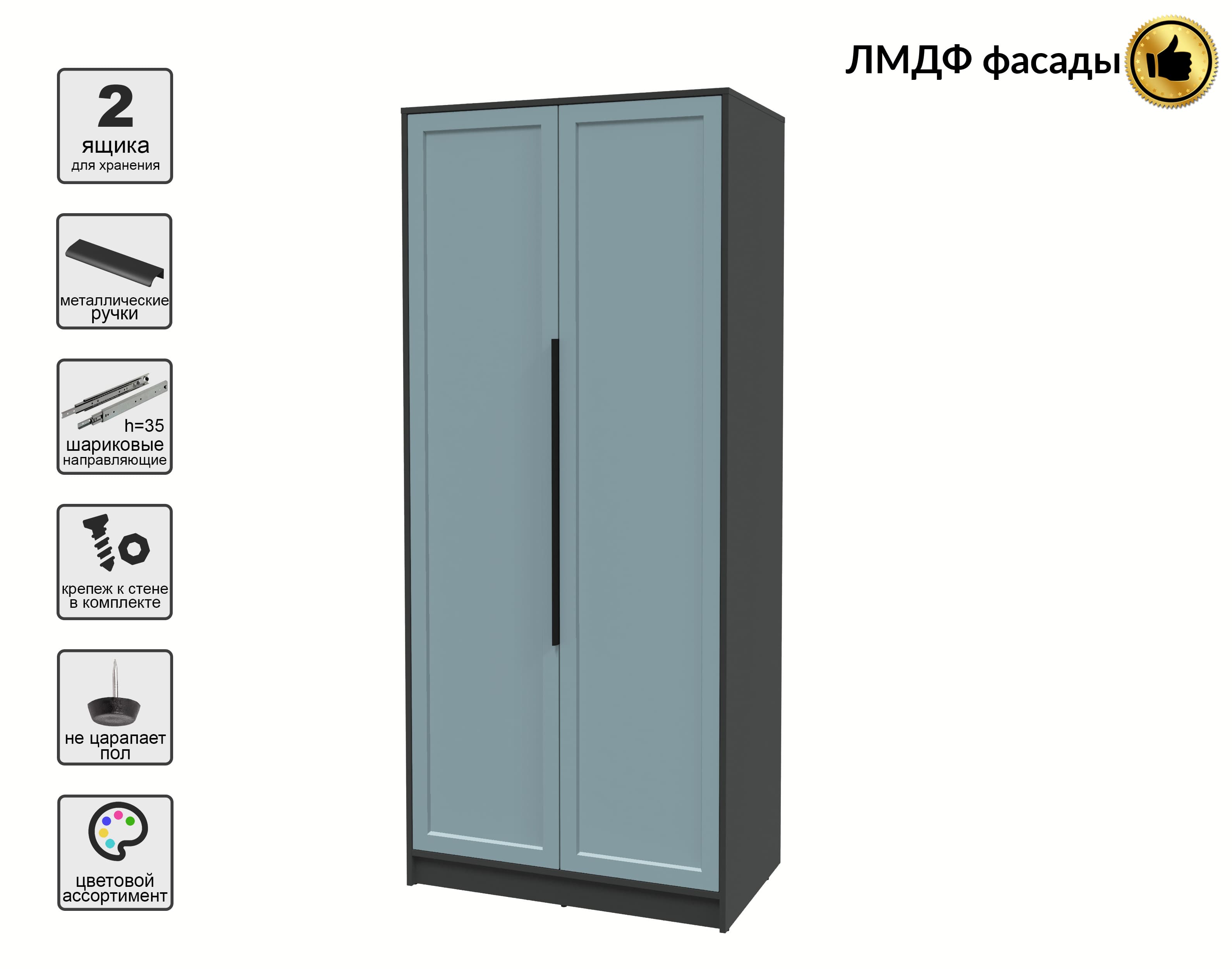 Шкаф распашной Тренд КТ-Ш2 (Антрацит ЛДСП/ Океан ЛМДФ) Ш918 В2128 Г547