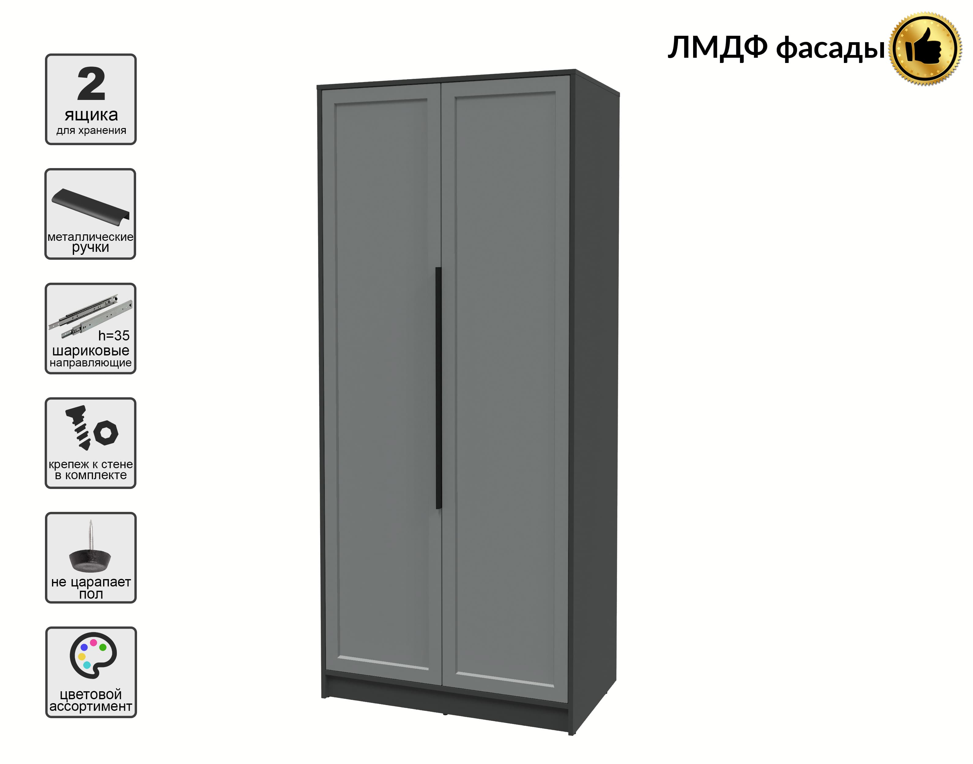 Шкаф распашной Тренд КТ-Ш2 (Антрацит ЛДСП/ Серый ЛМДФ) Ш918 В2128 Г547