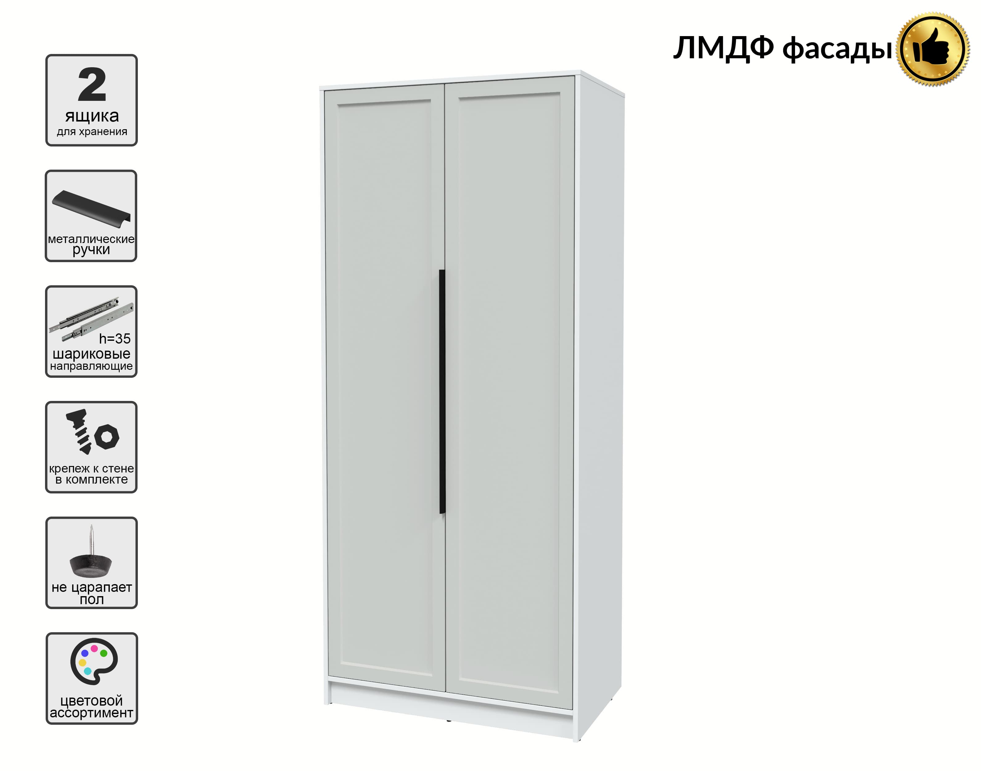 Шкаф распашной Тренд КТ-Ш2 (Белый платинум ЛДСП/ Грэй ЛМДФ) Ш918 В2128 Г547