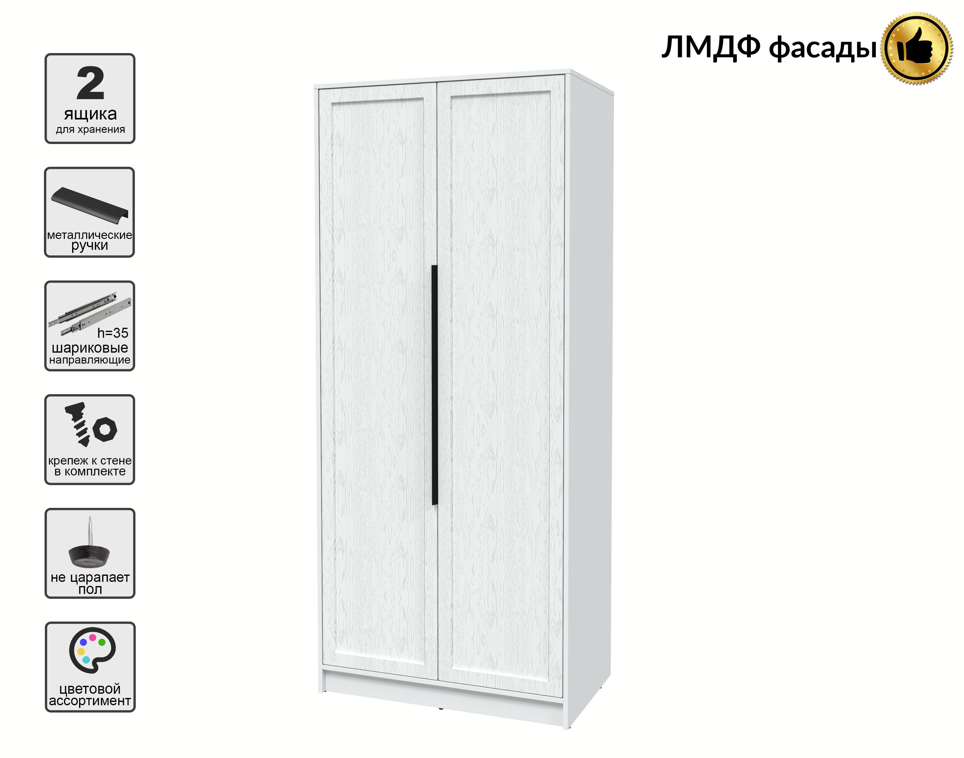 Шкаф распашной Тренд КТ-Ш2 (Белый платинум ЛДСП/ Дуб полярный ЛМДФ) Ш918 В2128 Г547