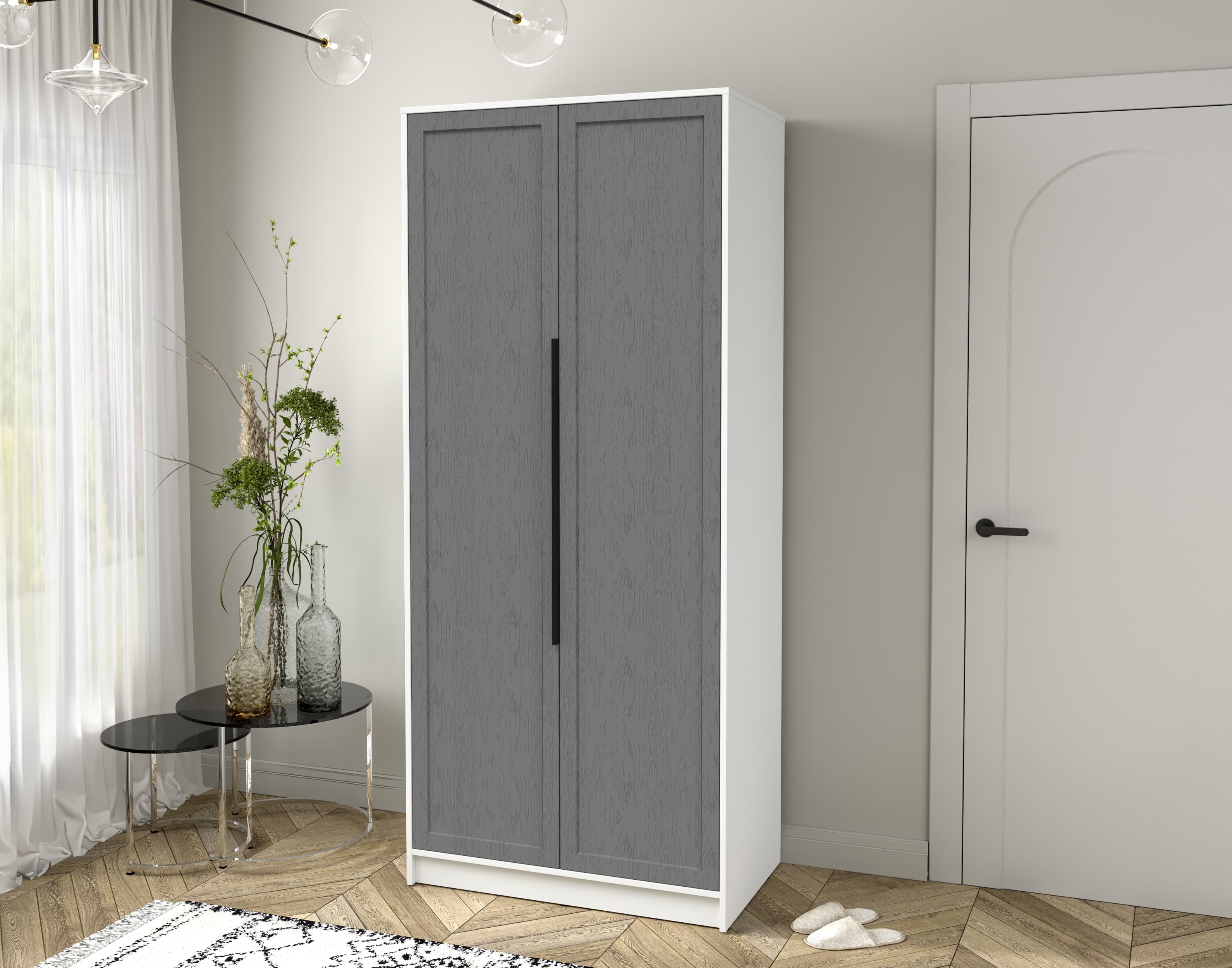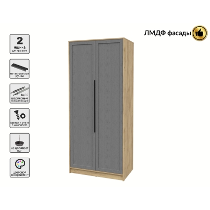 Шкаф распашной Тренд КТ-Ш2 (Белый платинум ЛДСП/ Дуб серый ЛМДФ) Ш918 В2128 Г547