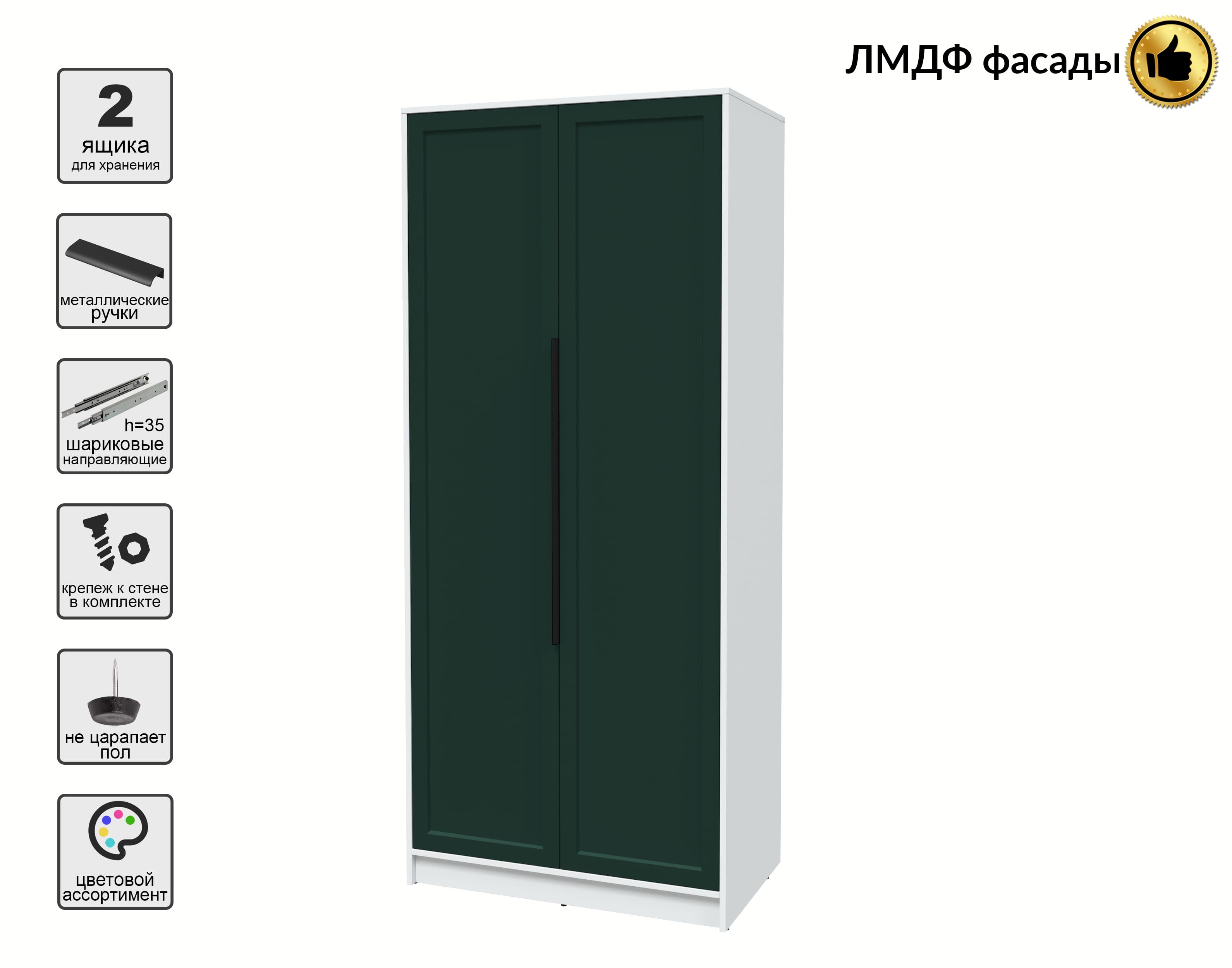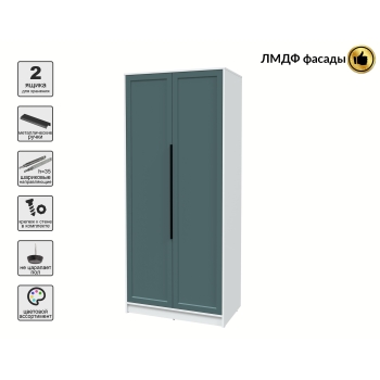 Шкаф распашной Тренд КТ-Ш2 (Белый платинум ЛДСП/ Изумруд ЛМДФ) Ш918 В2128 Г547