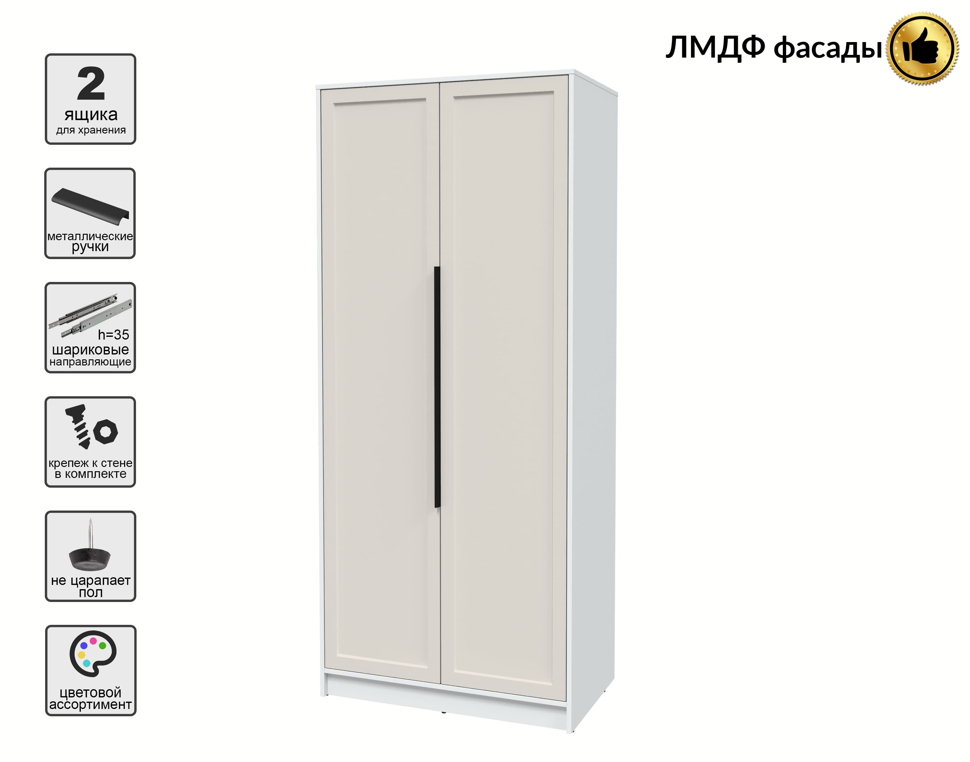 Шкаф распашной Тренд КТ-Ш2 (Белый платинум ЛДСП/ Кашемир ЛМДФ) Ш918 В2128 Г547