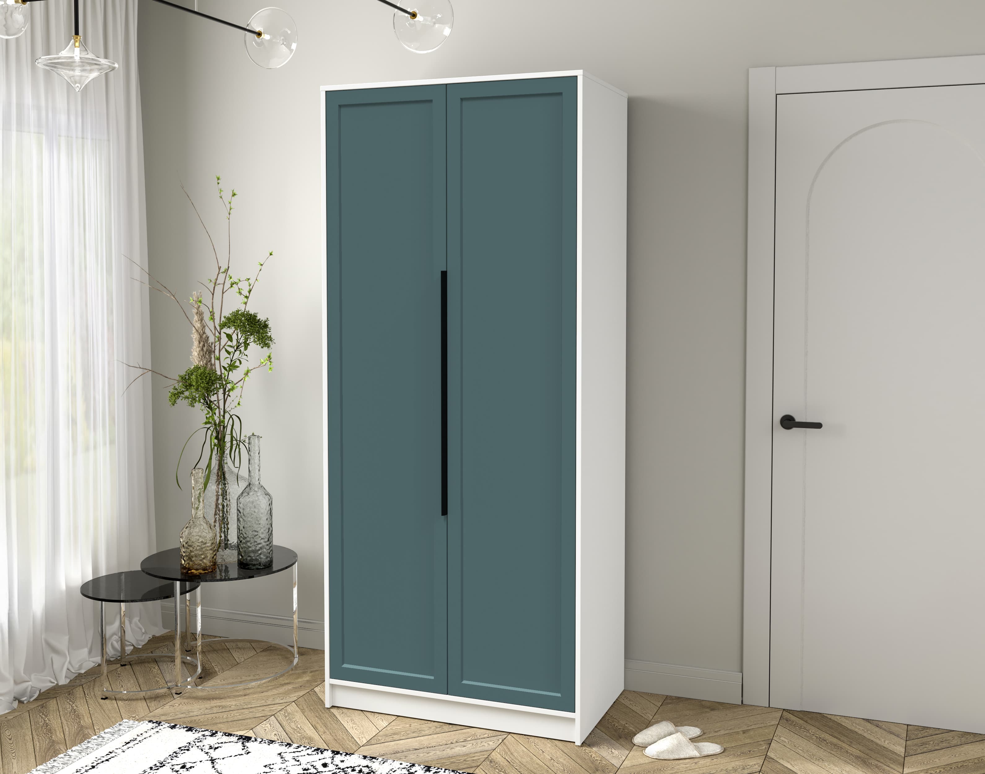 Шкаф распашной Тренд КТ-Ш2 (Белый платинум ЛДСП/ Верде ЛМДФ) Ш918 В2128 Г547