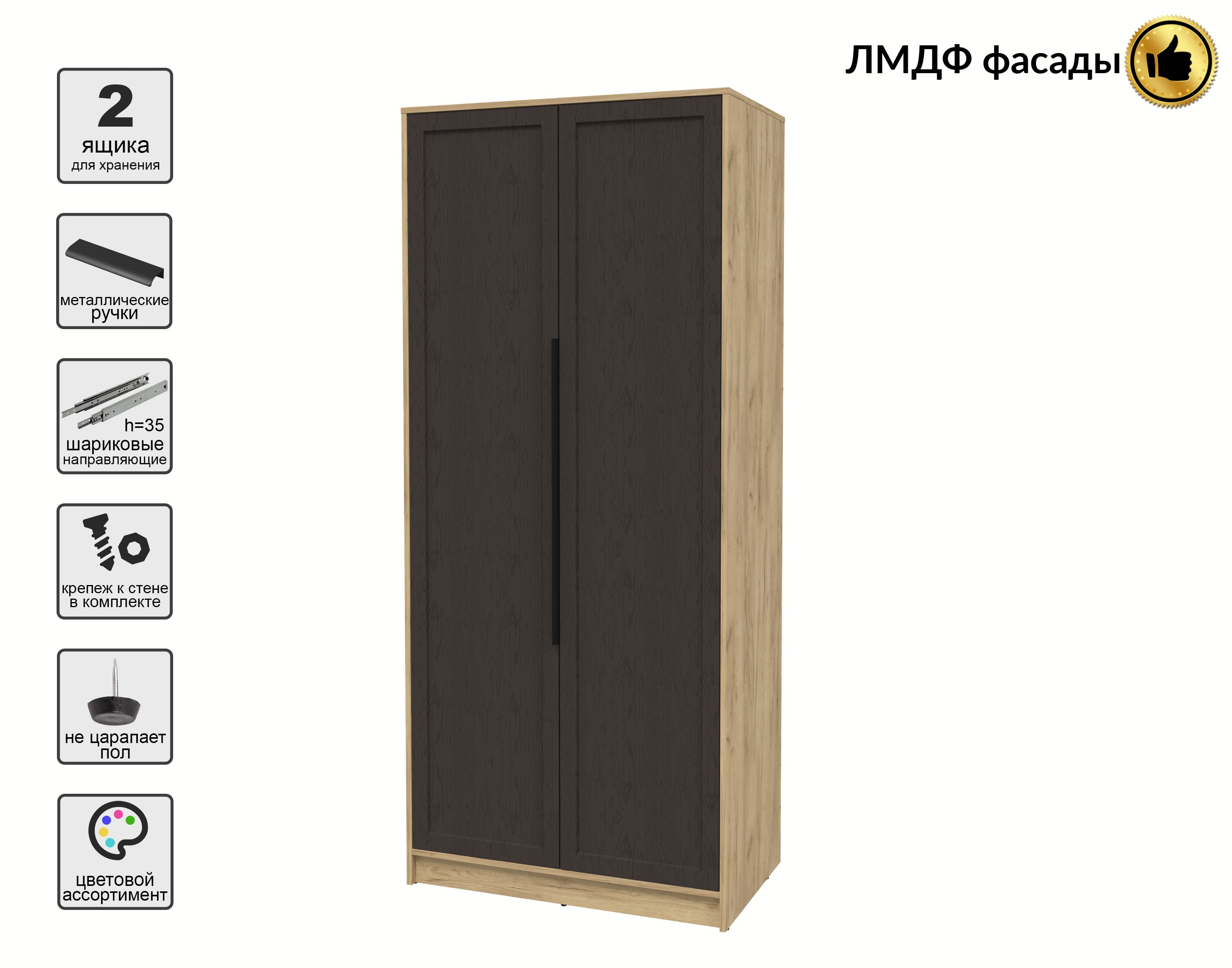 Шкаф распашной Тренд КТ-Ш2 (Дуб золотой ЛДСП/ Дуб английский ЛМДФ) Ш918 В2128 Г547