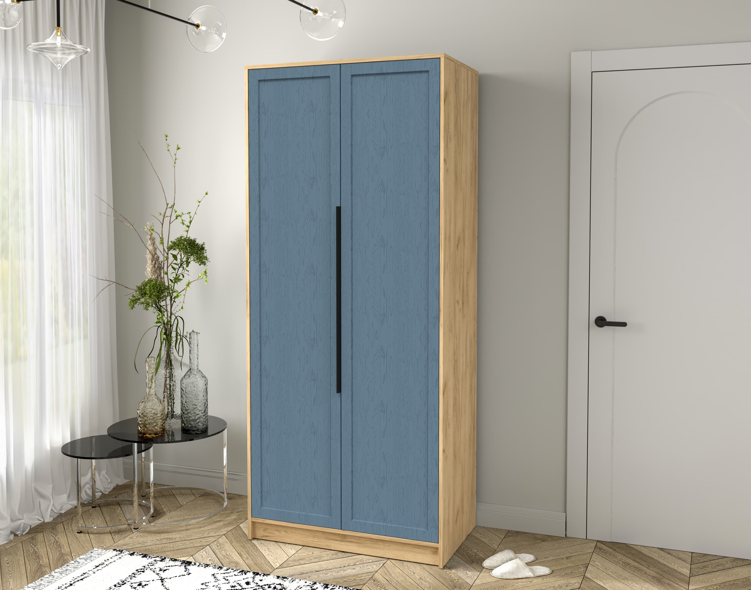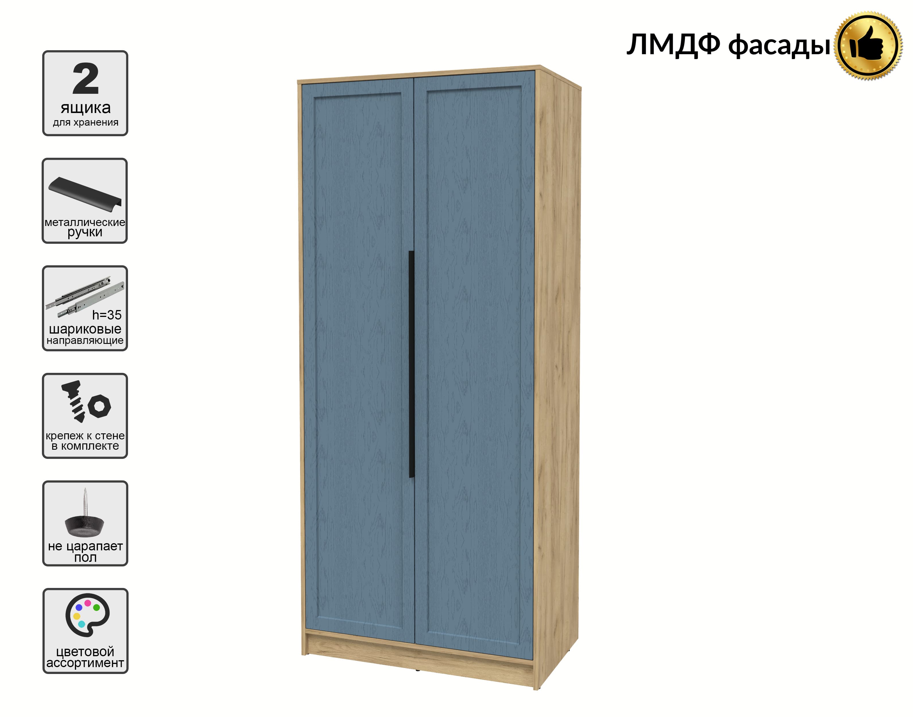 Шкаф распашной Тренд КТ-Ш2 (Дуб золотой ЛДСП/ Дуб лазурный ЛМДФ) Ш918 В2128 Г547