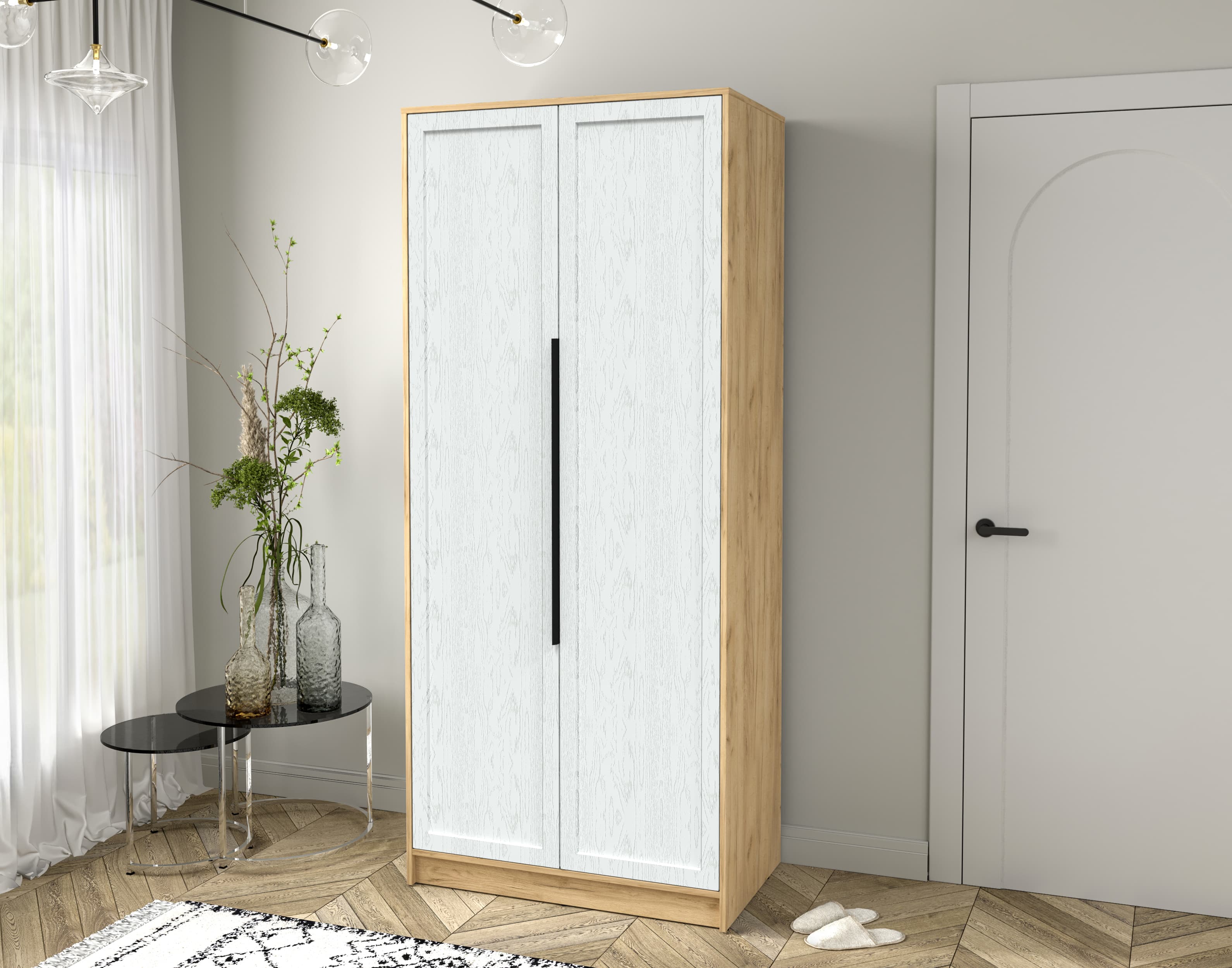 Шкаф распашной Тренд КТ-Ш2 (Дуб золотой ЛДСП/ Дуб полярный ЛМДФ) Ш918 В2128 Г547