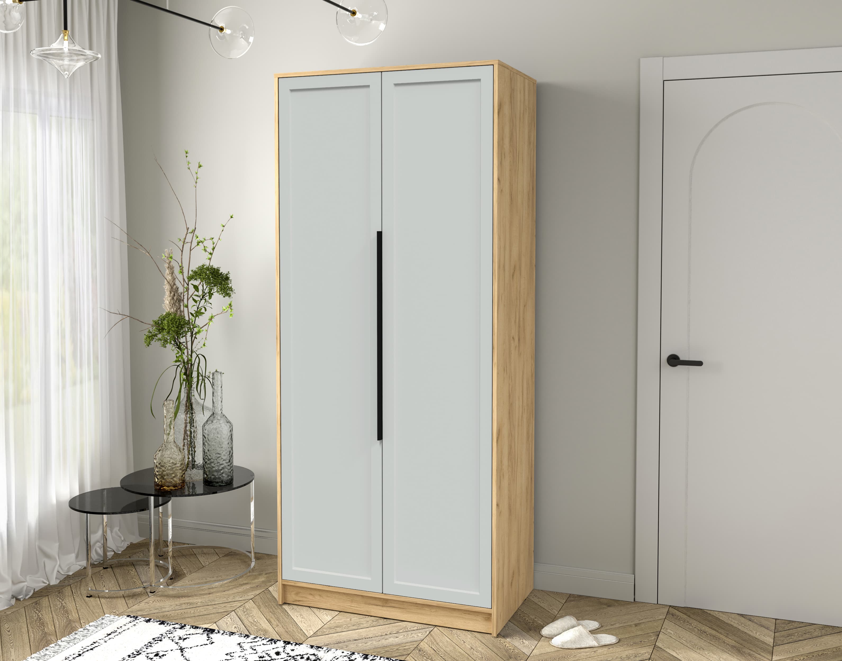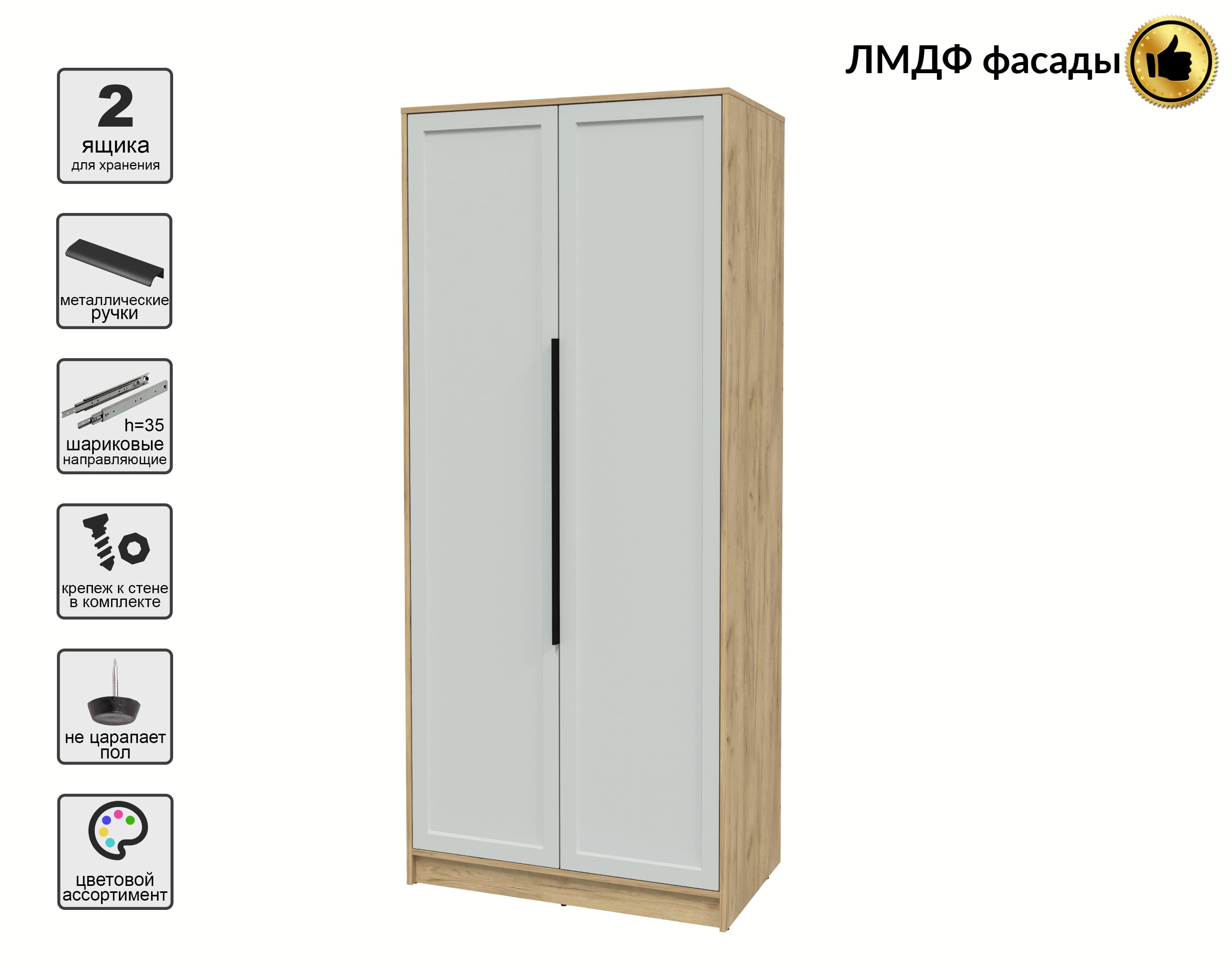 Шкаф распашной Тренд КТ-Ш2 (Дуб золотой ЛДСП/ Грэй ЛМДФ) Ш918 В2128 Г547