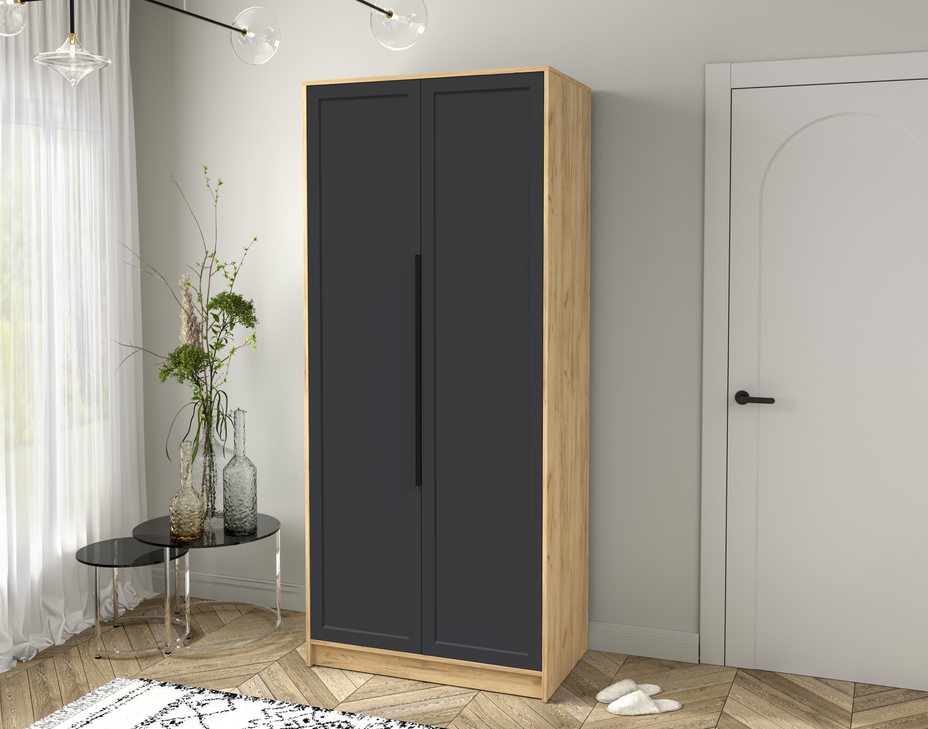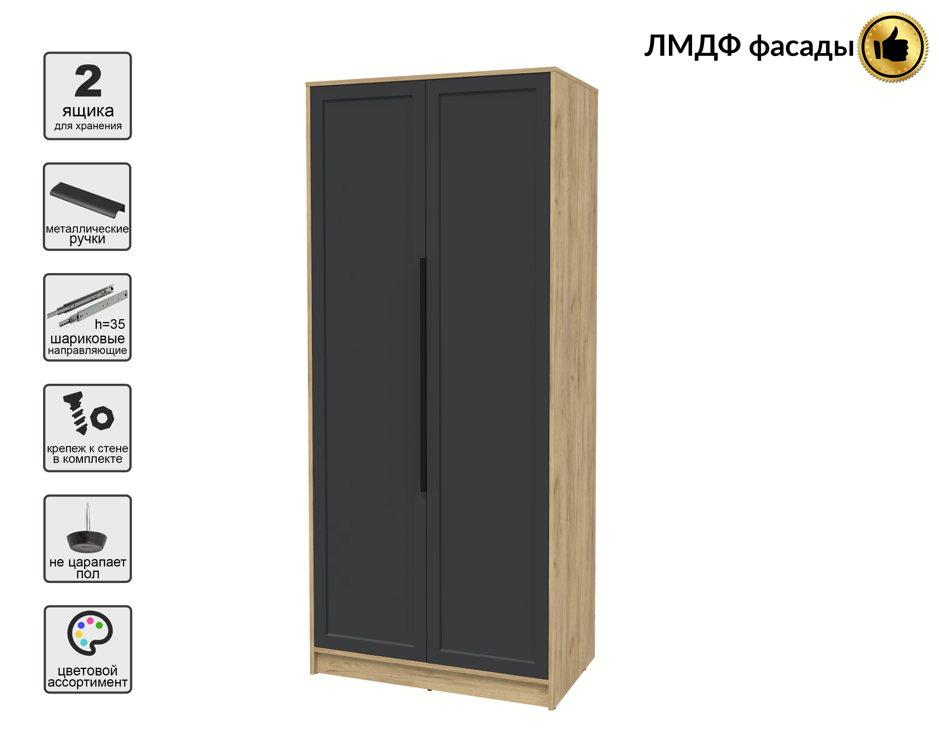 Шкаф распашной Тренд КТ-Ш2 (Дуб золотой ЛДСП/ Пепел ЛМДФ) Ш918 В2128 Г547
