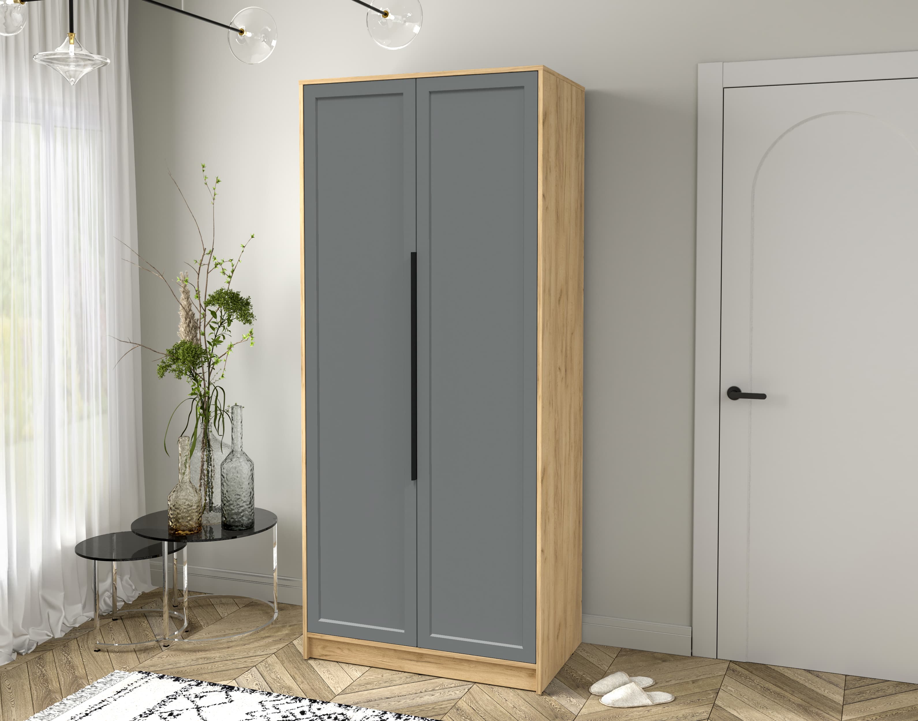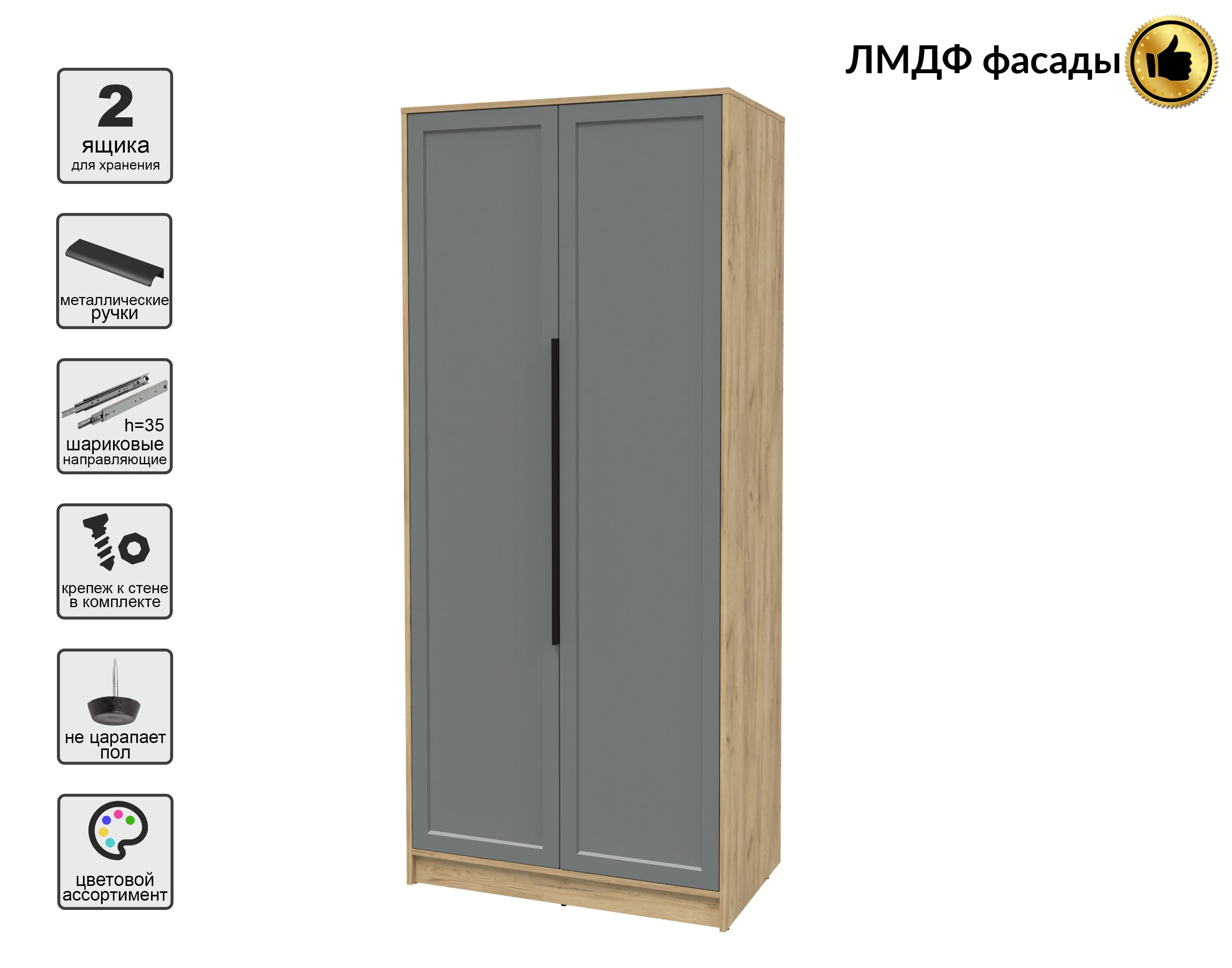 Шкаф распашной Тренд КТ-Ш2 (Дуб золотой ЛДСП/ Серый ЛМДФ) Ш918 В2128 Г547