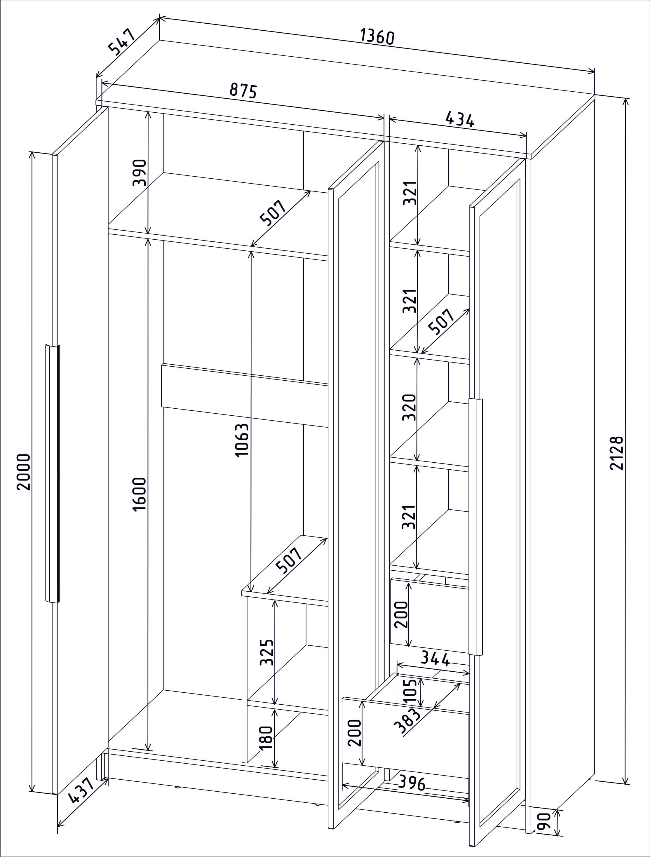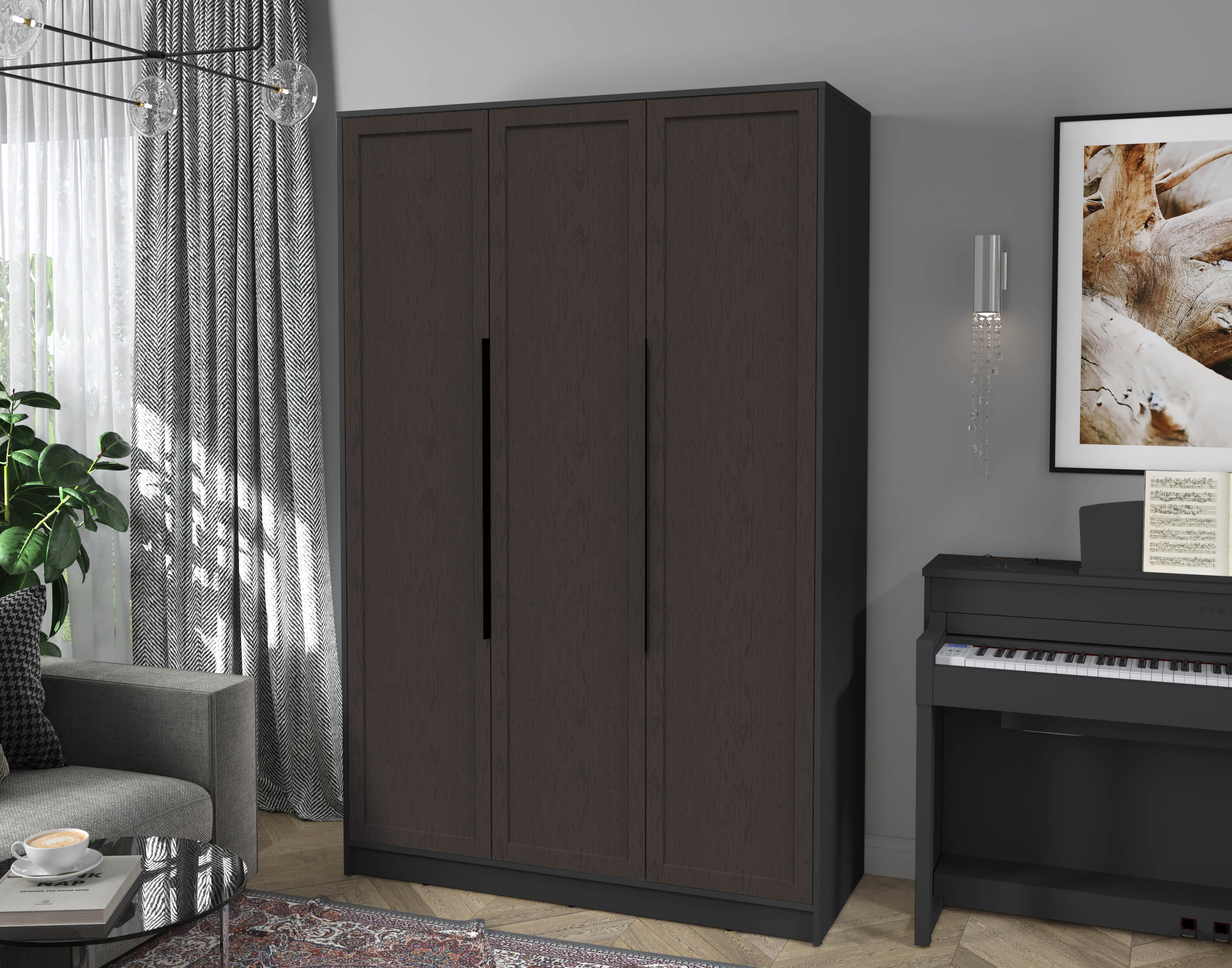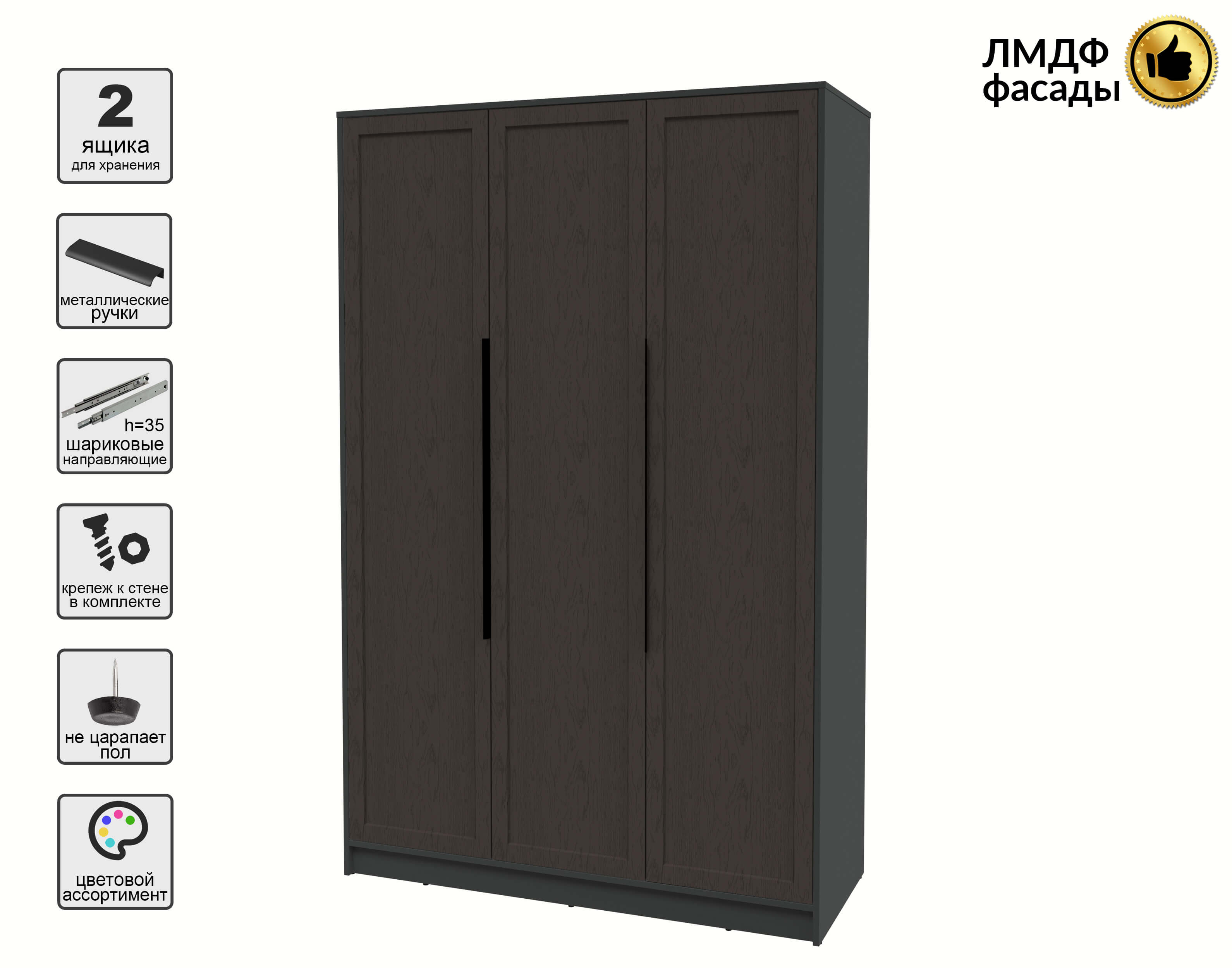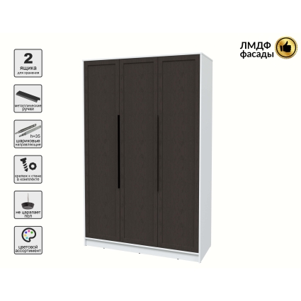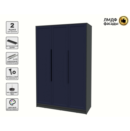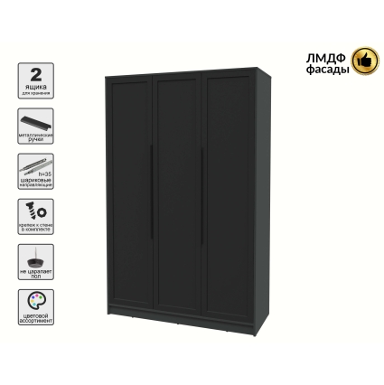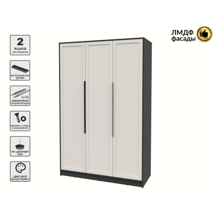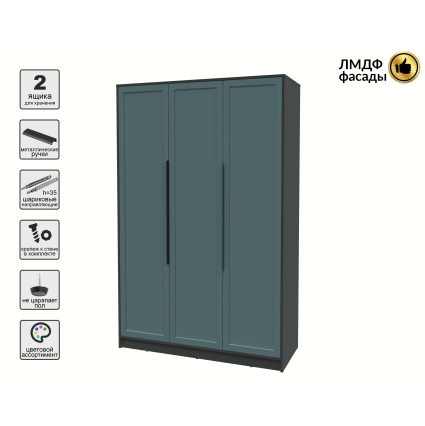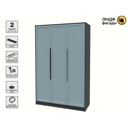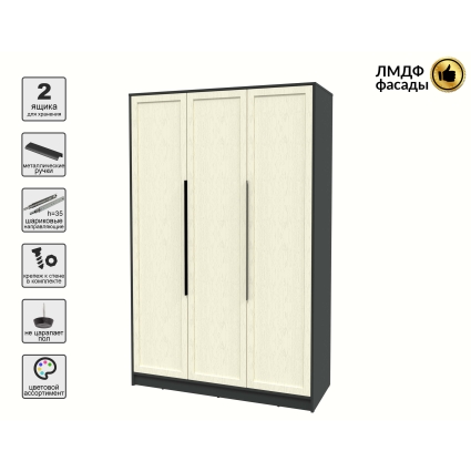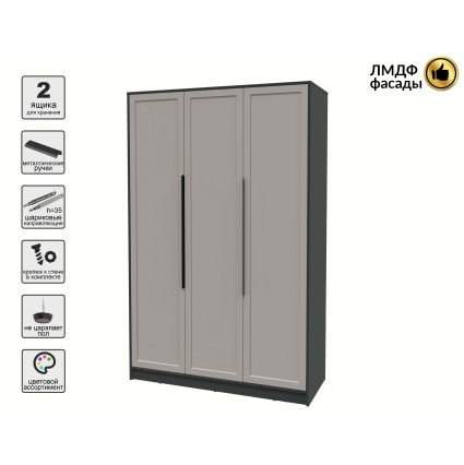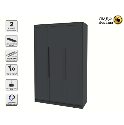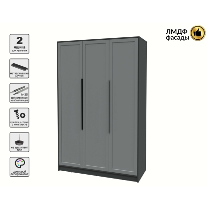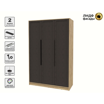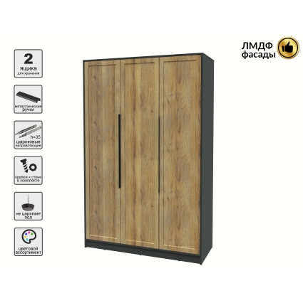 Шкаф распашной Тренд КТ-Ш3 (Антрацит ЛДСП/ Дуб английский ЛМДФ) Ш1360 В2128 Г547