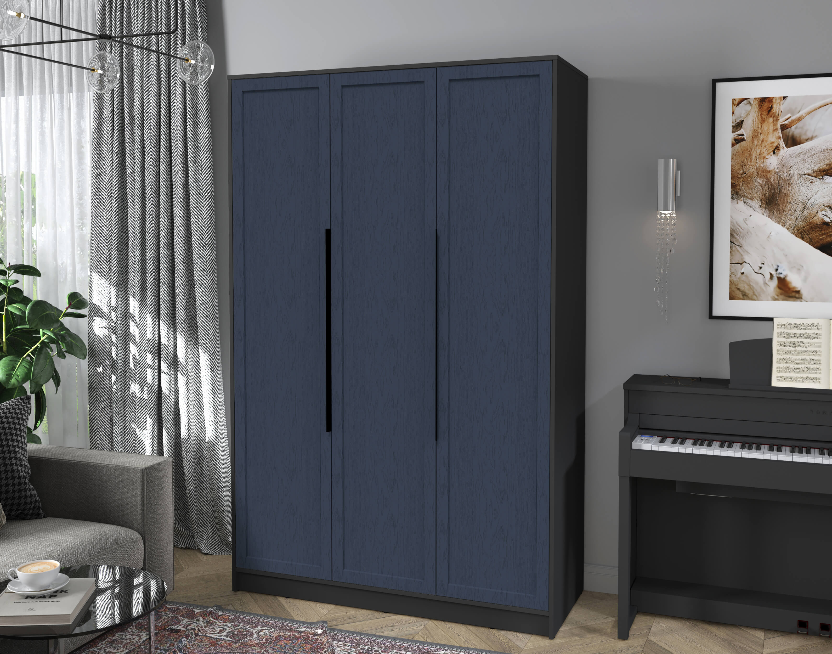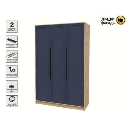 Шкаф распашной Тренд КТ-Ш3 (Антрацит ЛДСП/ Дуб королевский ЛМДФ) Ш1360 В2128 Г547