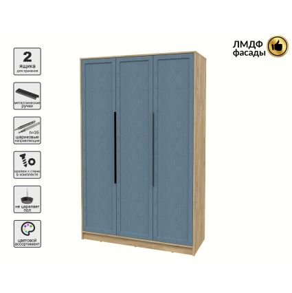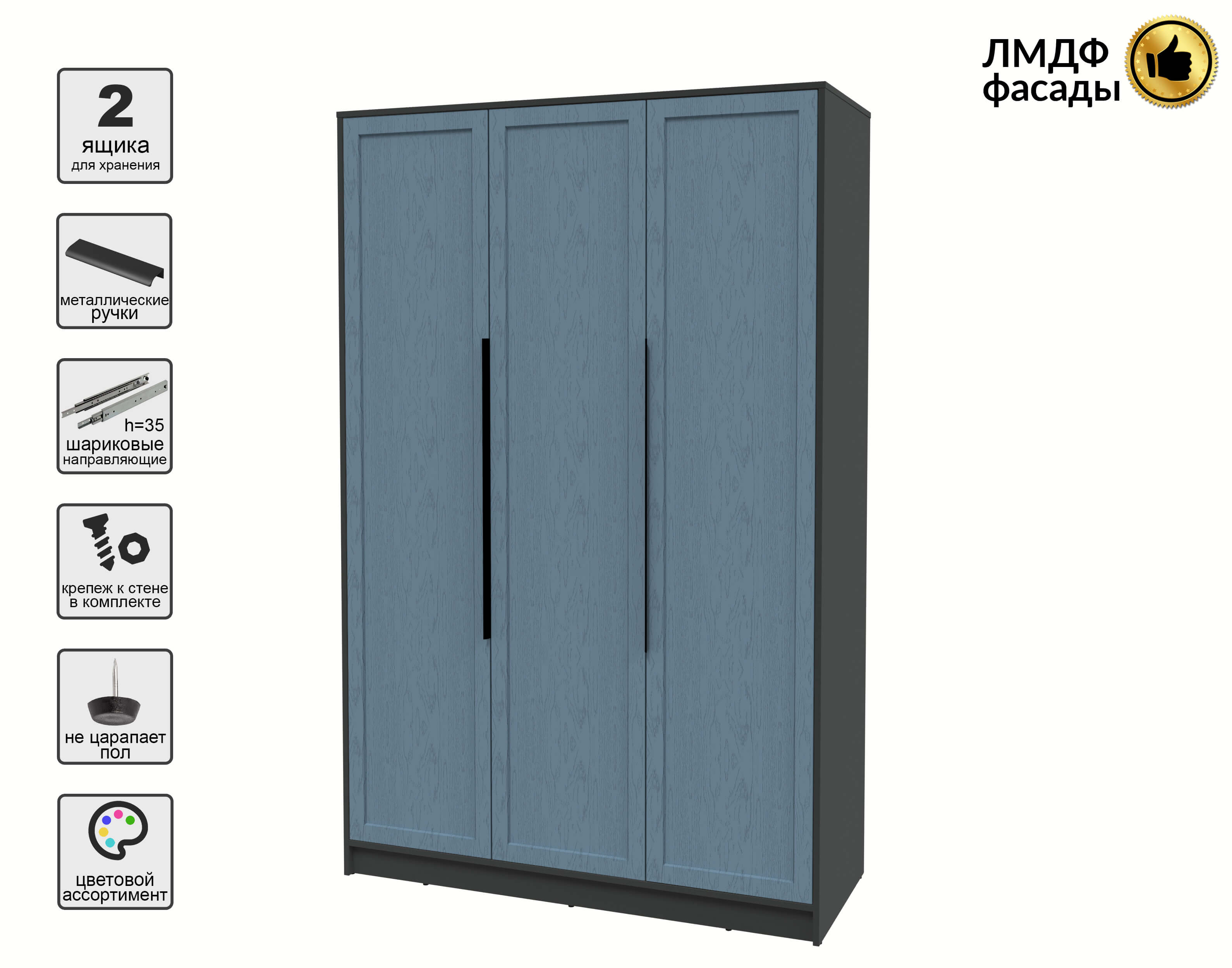 Шкаф распашной Тренд КТ-Ш3 (Антрацит ЛДСП/ Дуб лазурный ЛМДФ) Ш1360 В2128 Г547