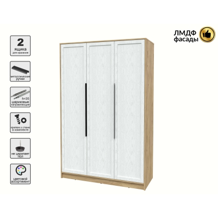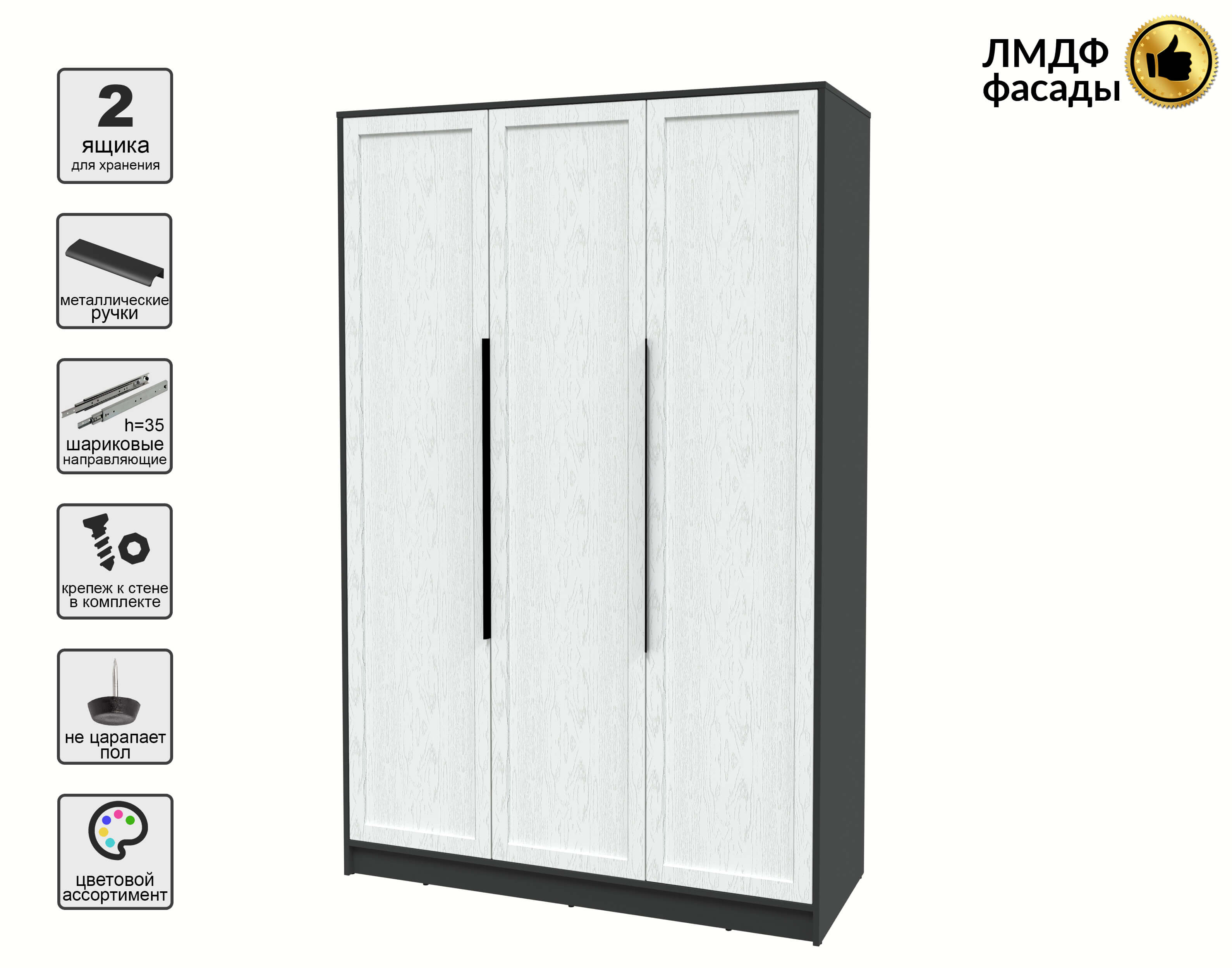 Шкаф распашной Тренд КТ-Ш3 (Антрацит ЛДСП/ Дуб полярный ЛМДФ) Ш1360 В2128 Г547