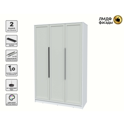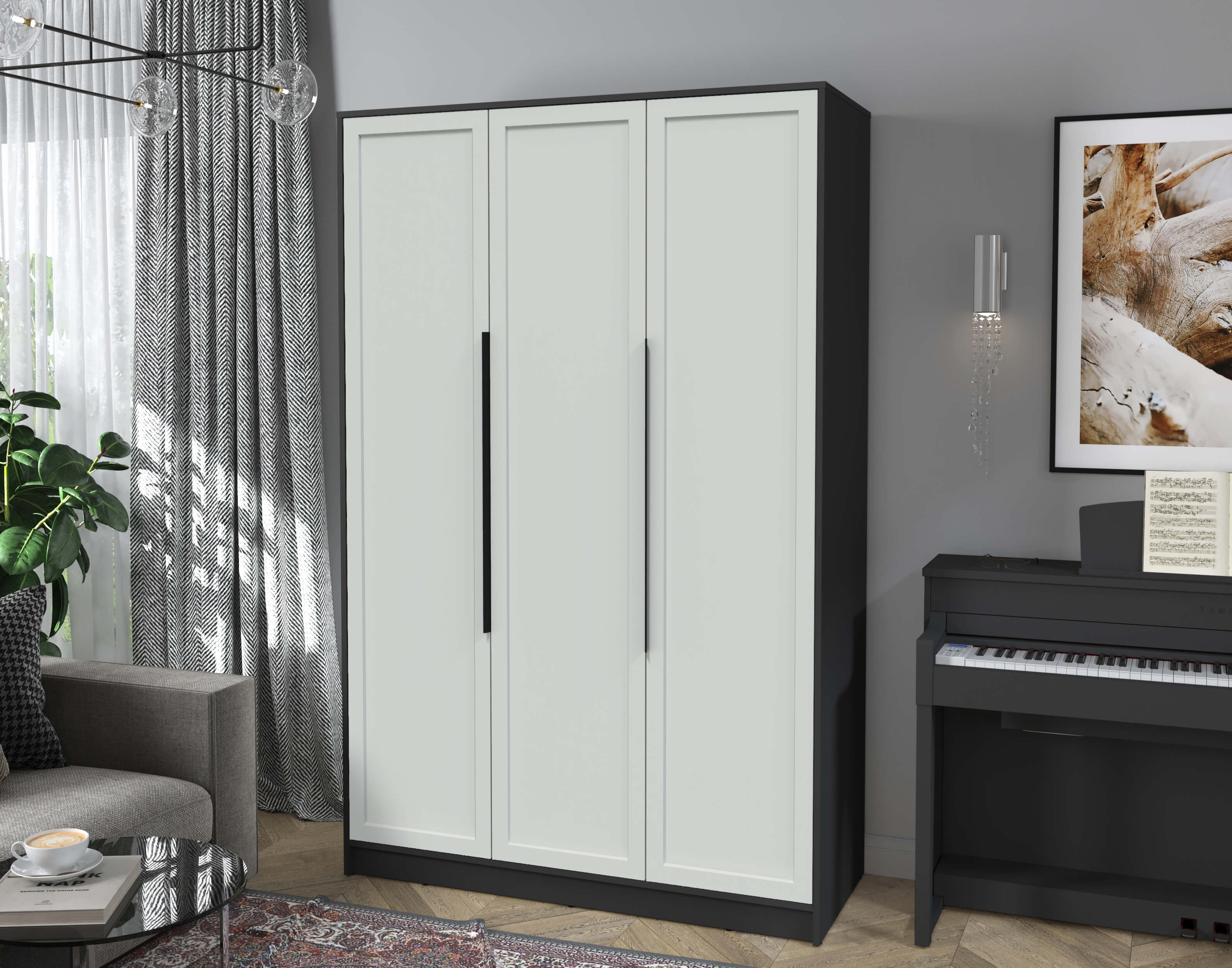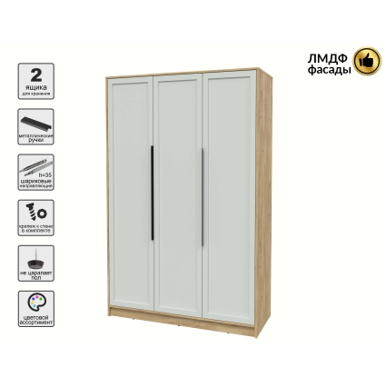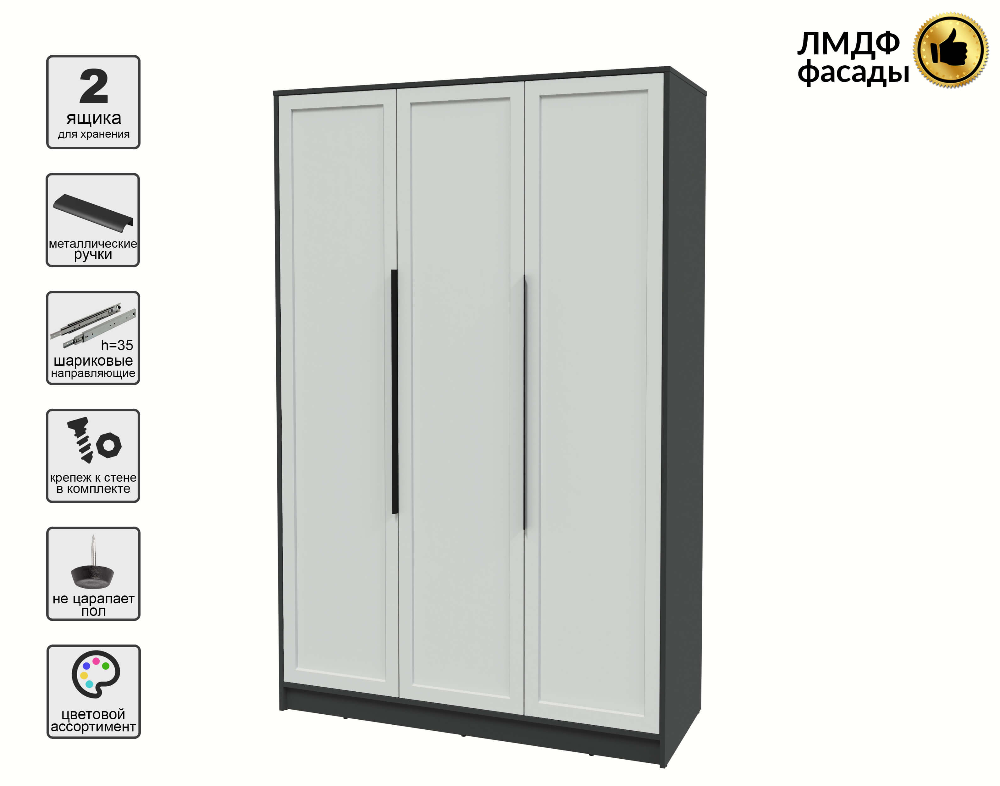 Шкаф распашной Тренд КТ-Ш3 (Антрацит ЛДСП/ Грэй ЛМДФ) Ш1360 В2128 Г547