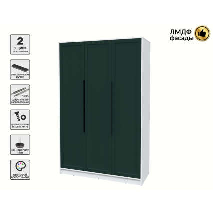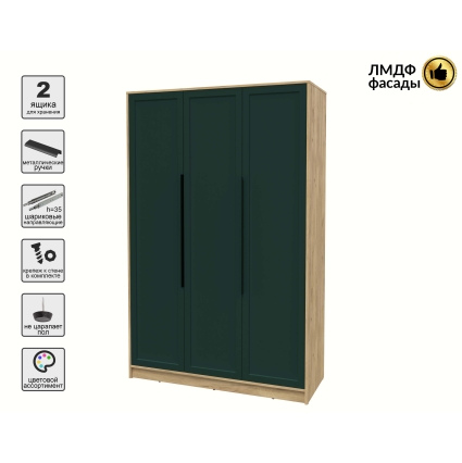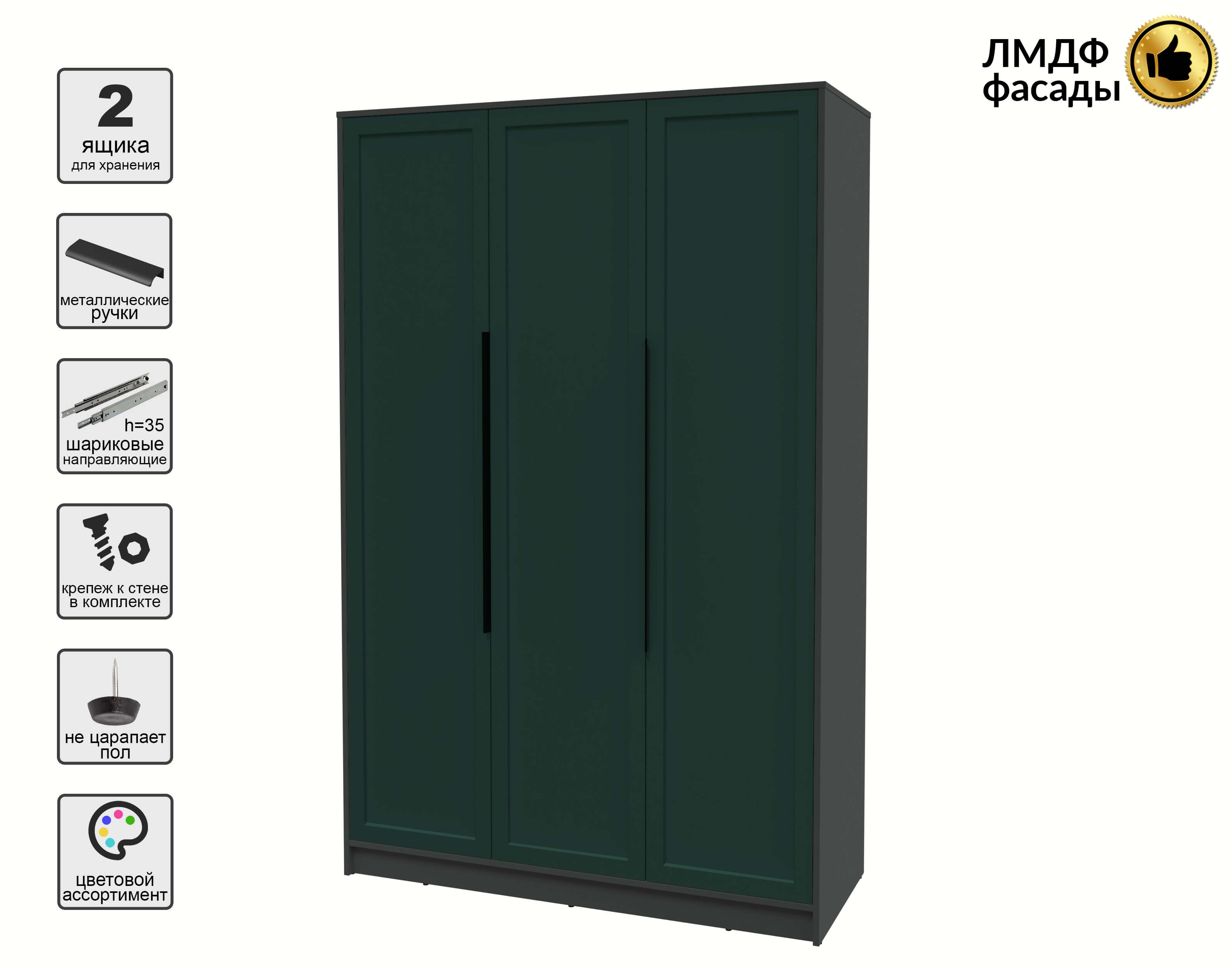 Шкаф распашной Тренд КТ-Ш3 (Антрацит ЛДСП/ Изумруд ЛМДФ) Ш1360 В2128 Г547