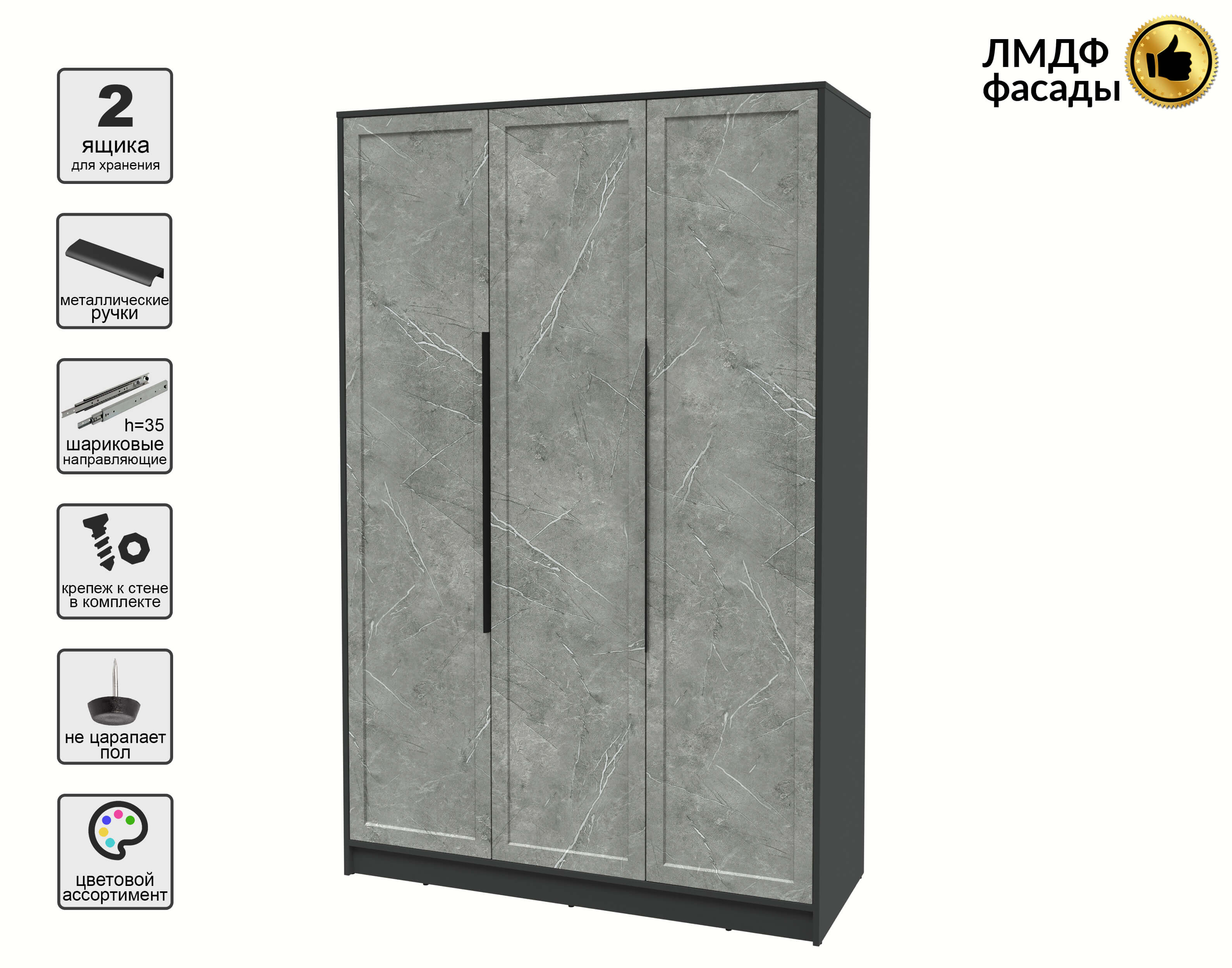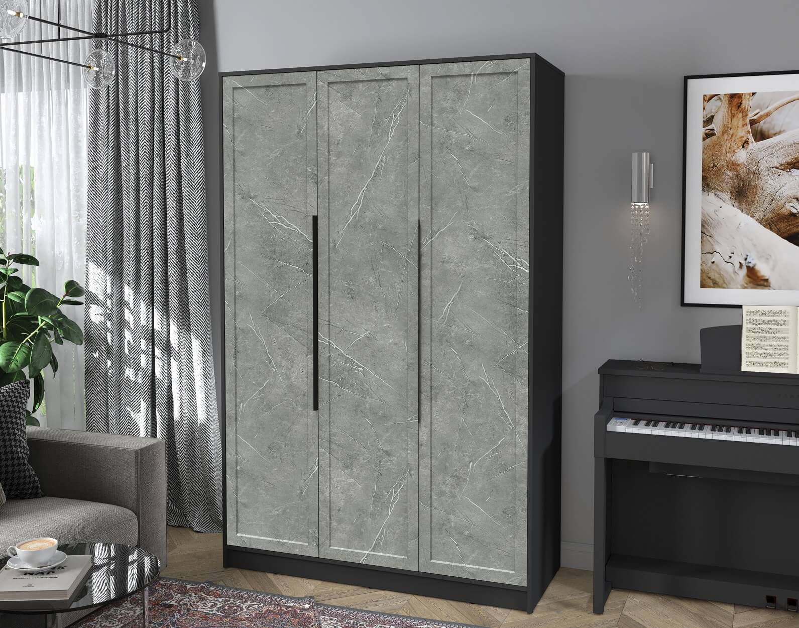 Шкаф распашной Тренд КТ-Ш3 (Антрацит ЛДСП/ Керамика ЛМДФ) Ш1360 В2128 Г547