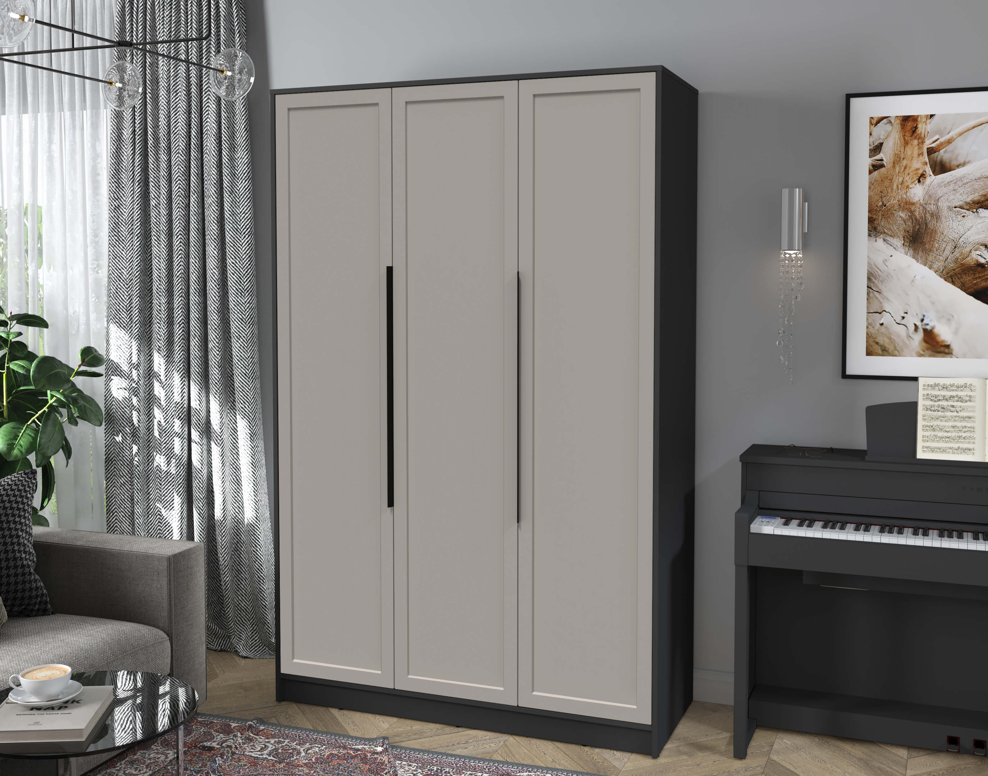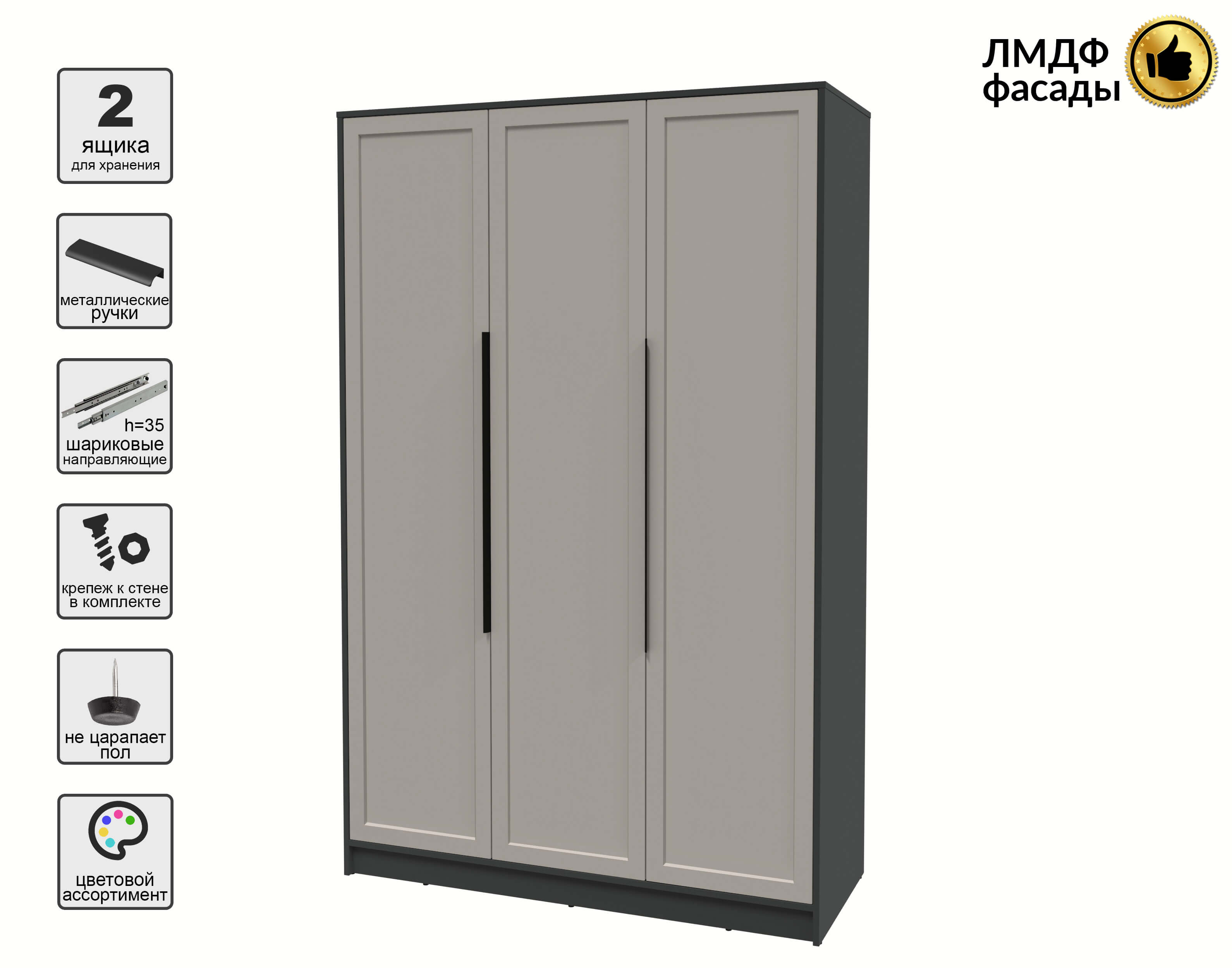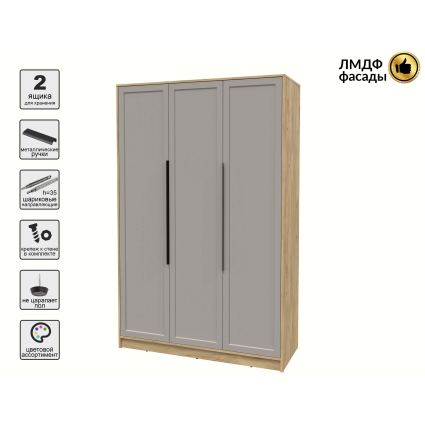 Шкаф распашной Тренд КТ-Ш3 (Антрацит ЛДСП/ Луна ЛМДФ) Ш1360 В2128 Г547