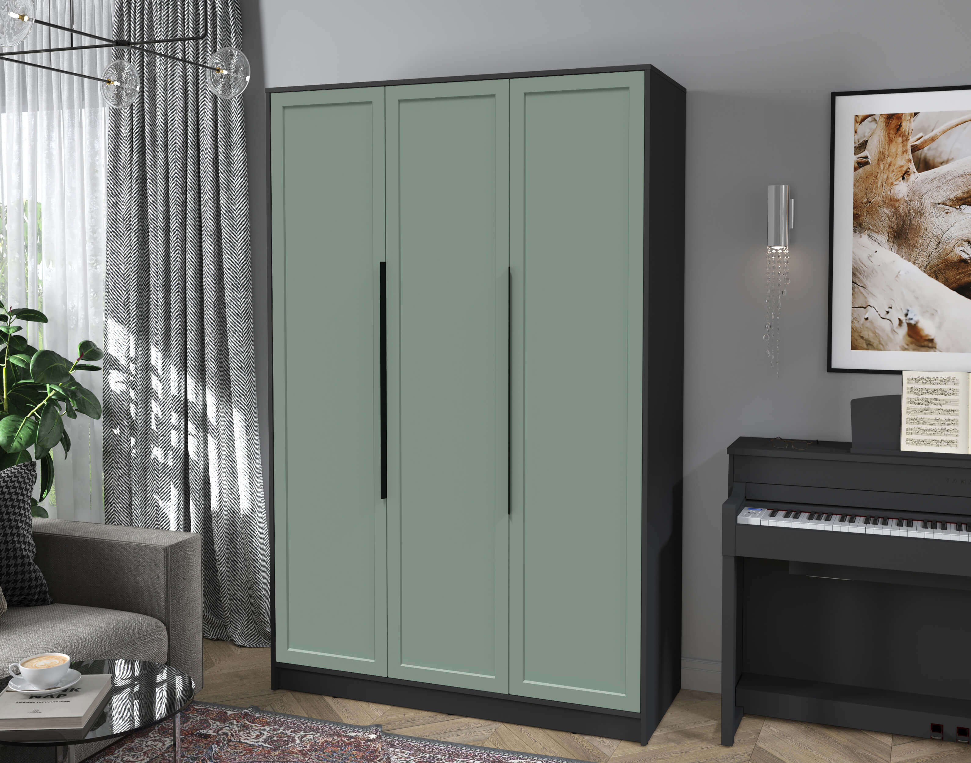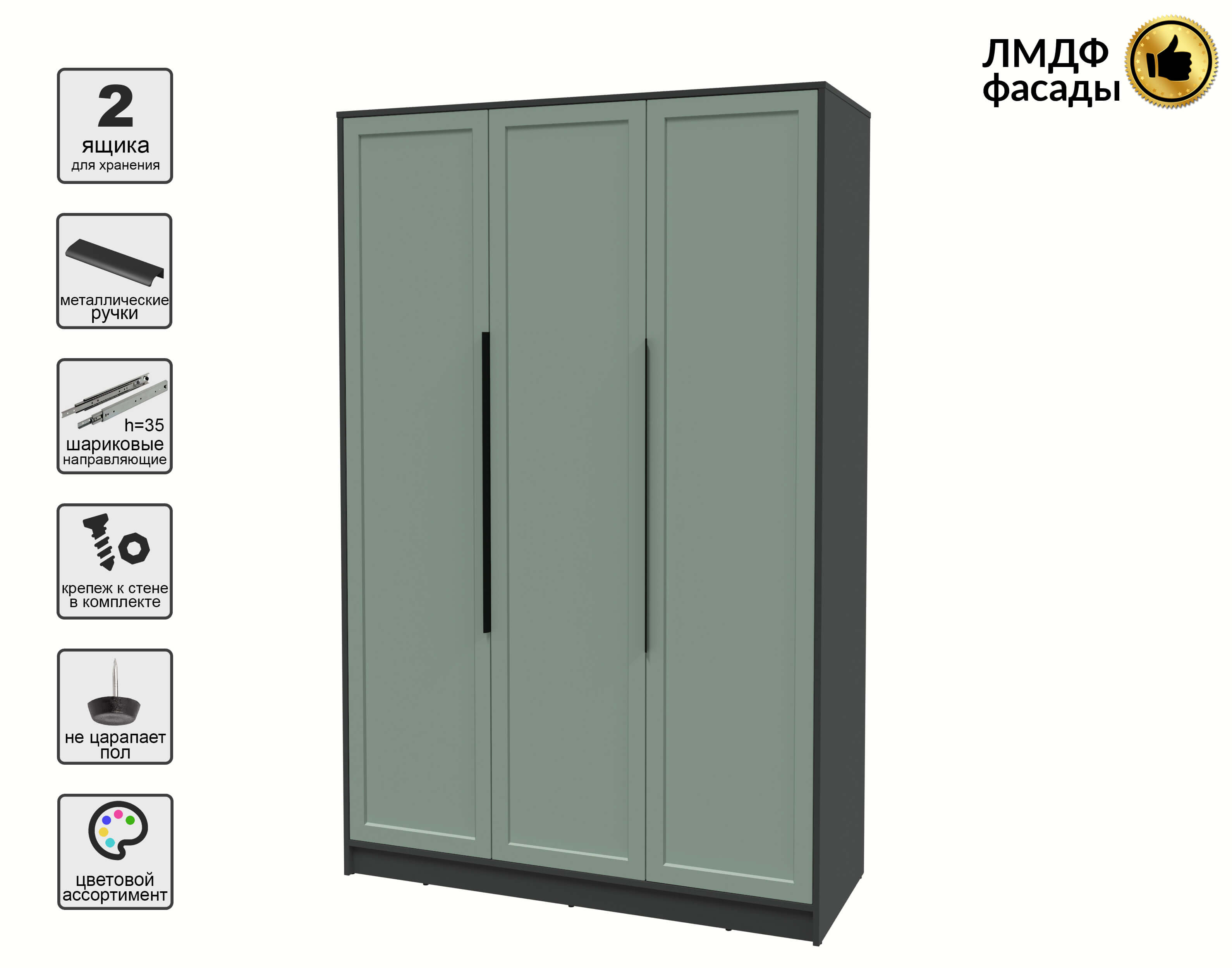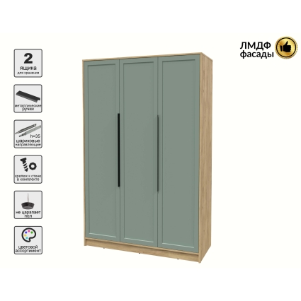 Шкаф распашной Тренд КТ-Ш3 (Антрацит ЛДСП/ Мята ЛМДФ) Ш1360 В2128 Г547
