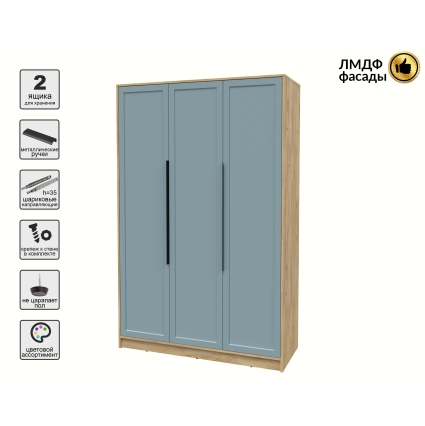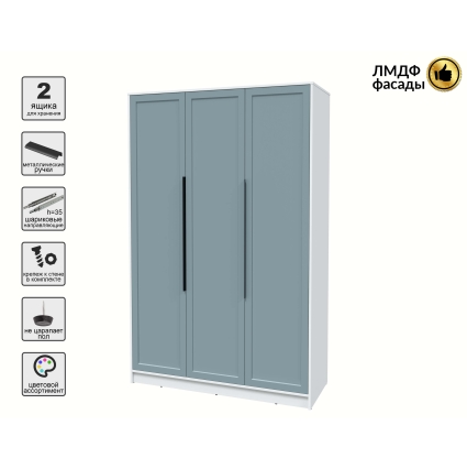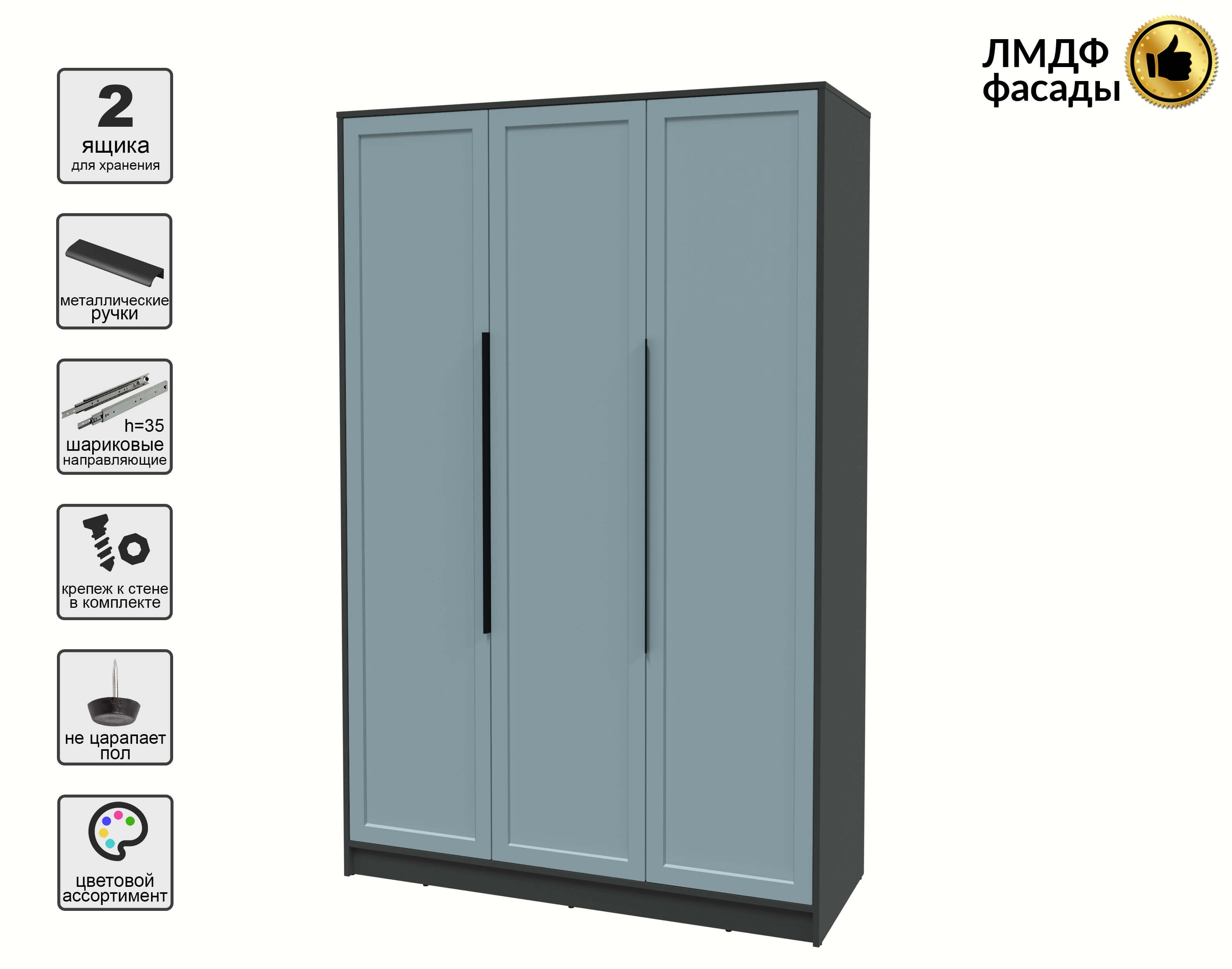 Шкаф распашной Тренд КТ-Ш3 (Антрацит ЛДСП/ Океан ЛМДФ) Ш1360 В2128 Г547