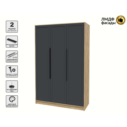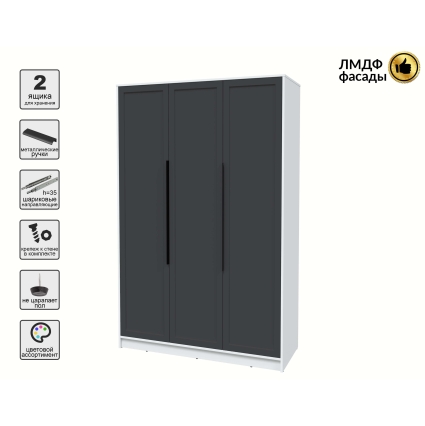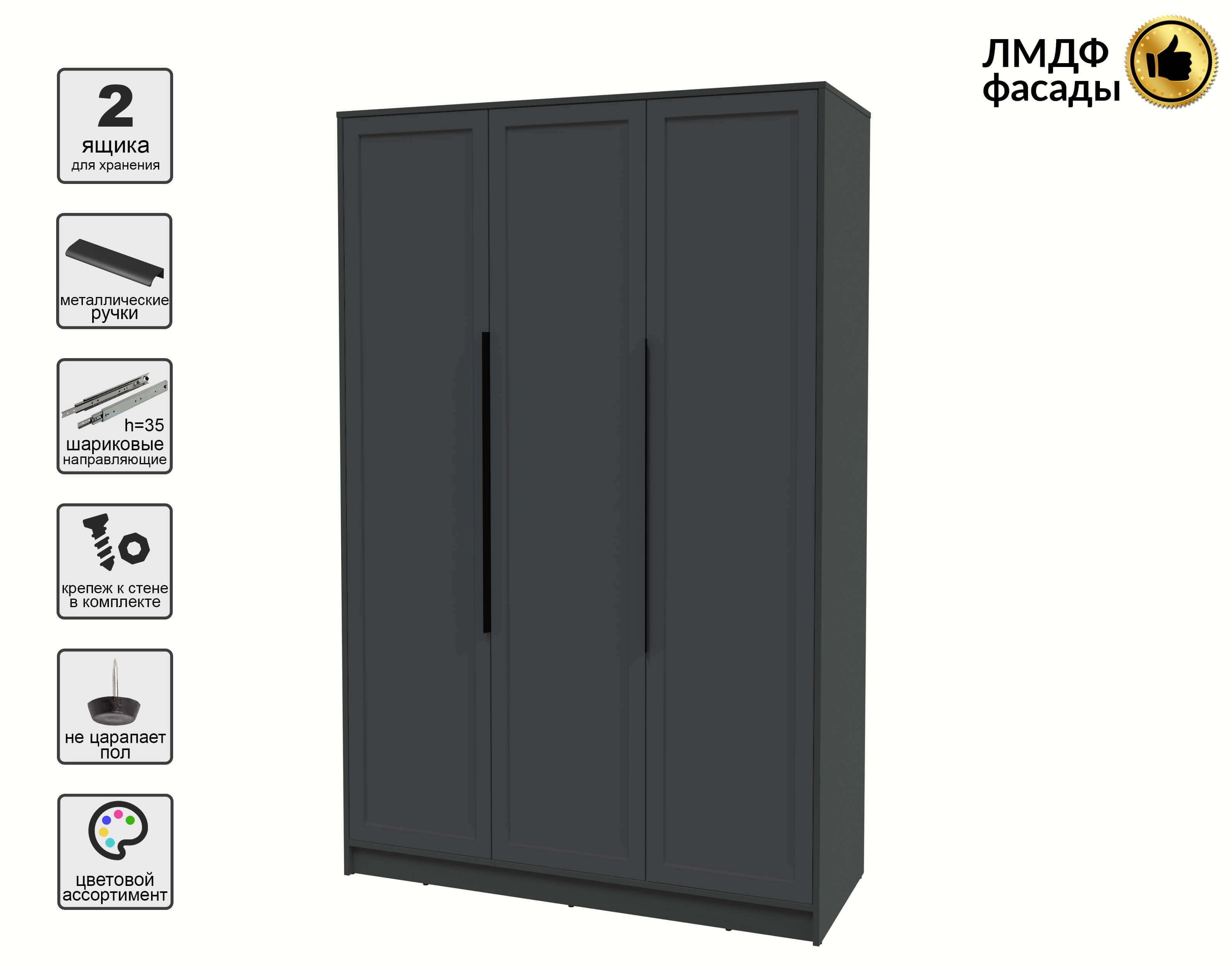 Шкаф распашной Тренд КТ-Ш3 (Антрацит ЛДСП/ Пепел ЛМДФ) Ш1360 В2128 Г547