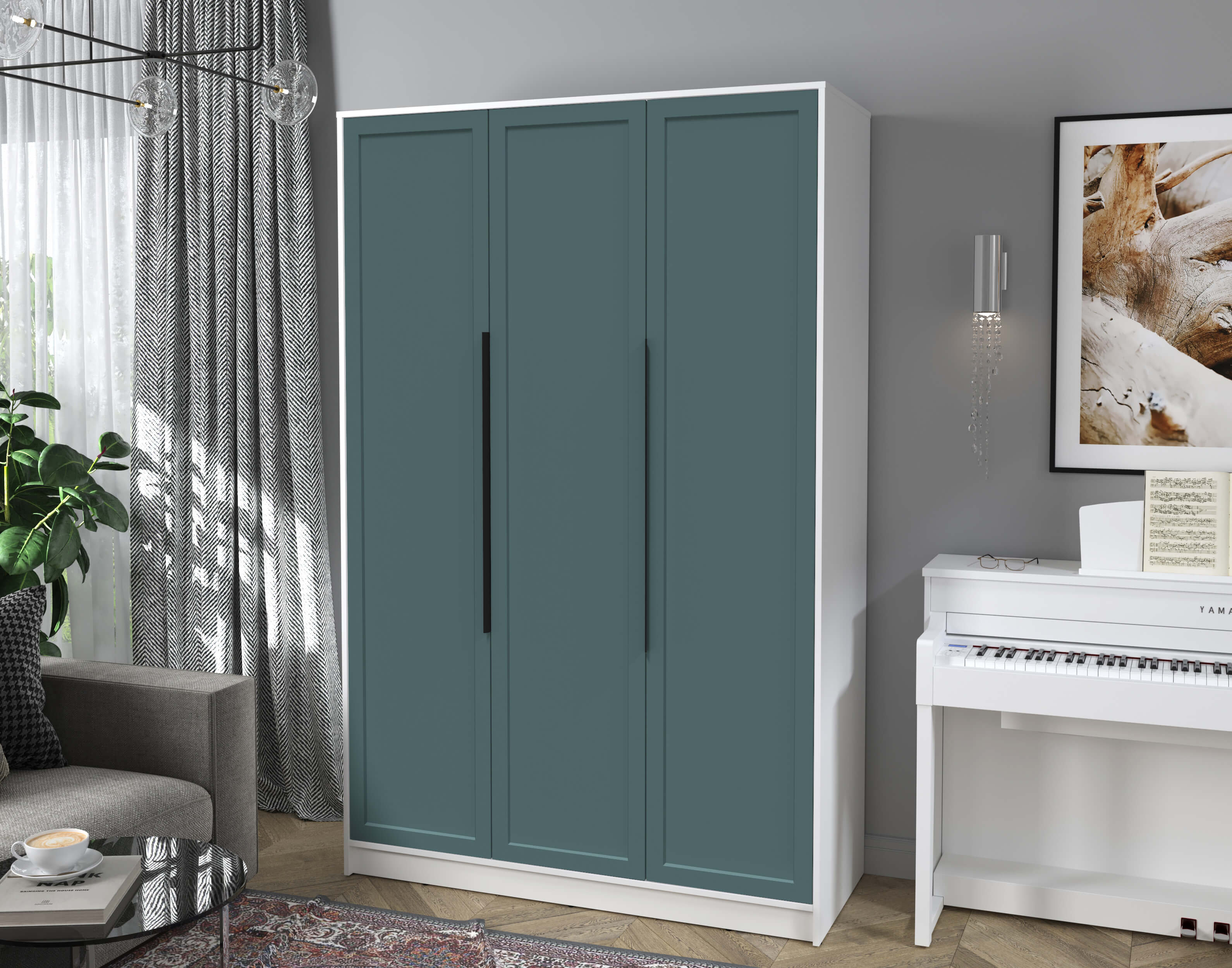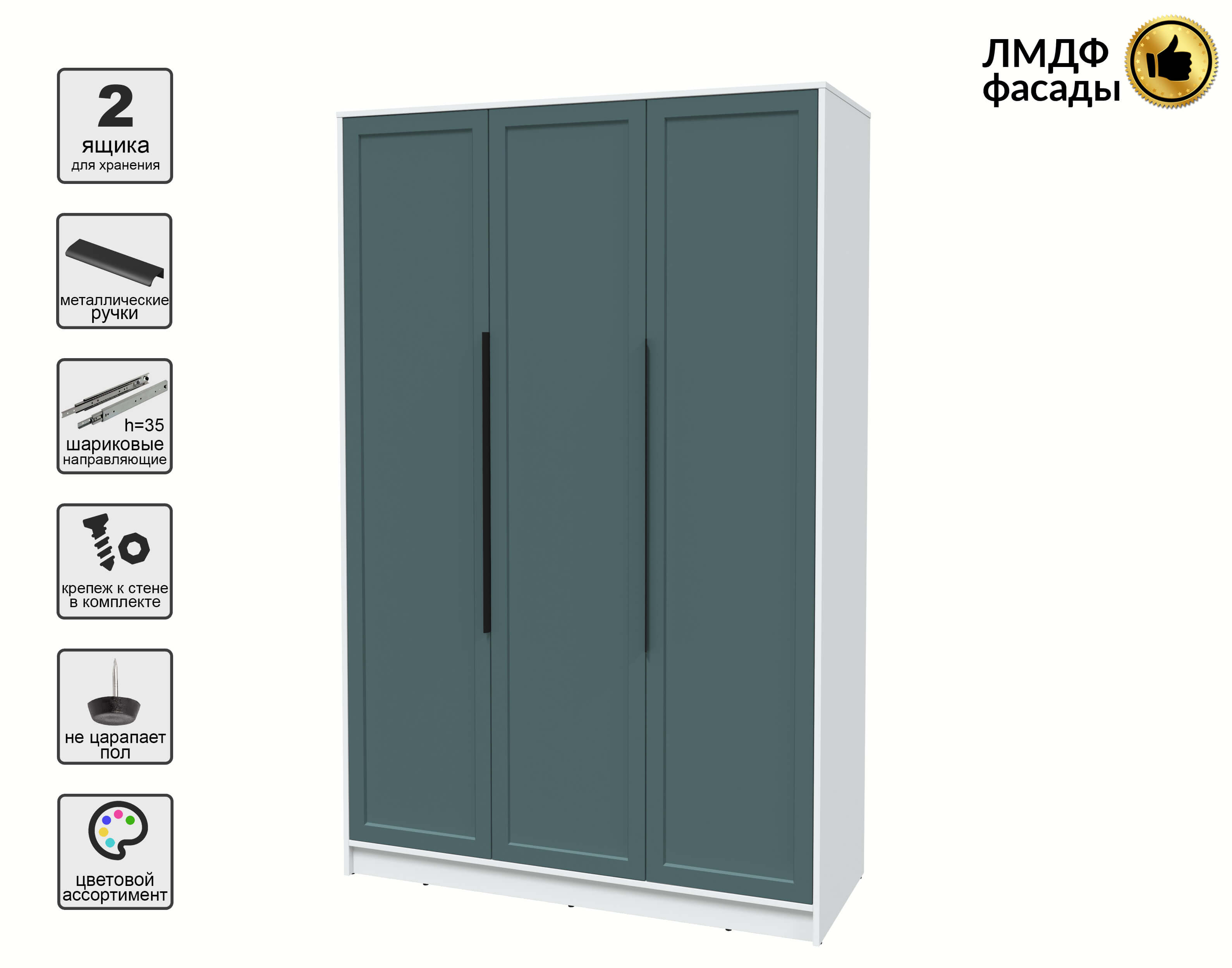 Шкаф распашной Тренд КТ-Ш3 (Белый платинум ЛДСП/ Верде ЛМДФ) Ш1360 В2128 Г547