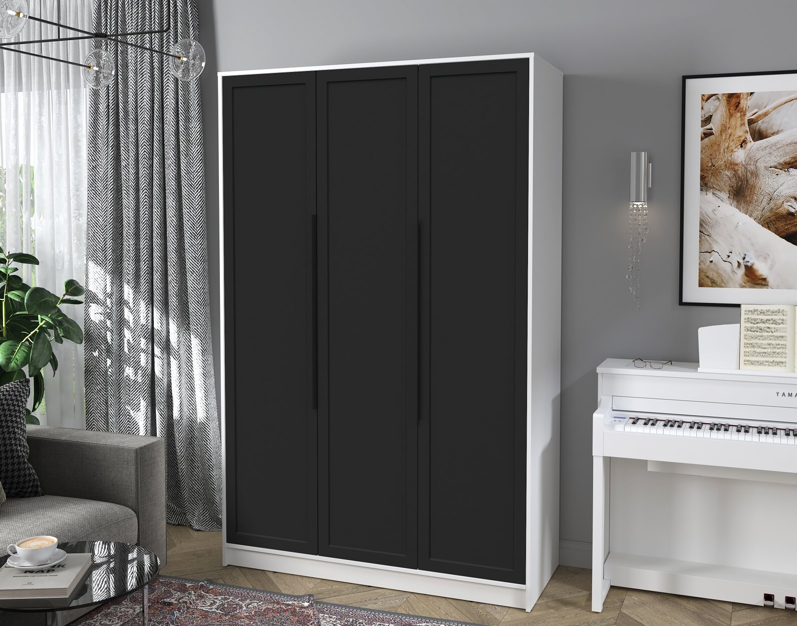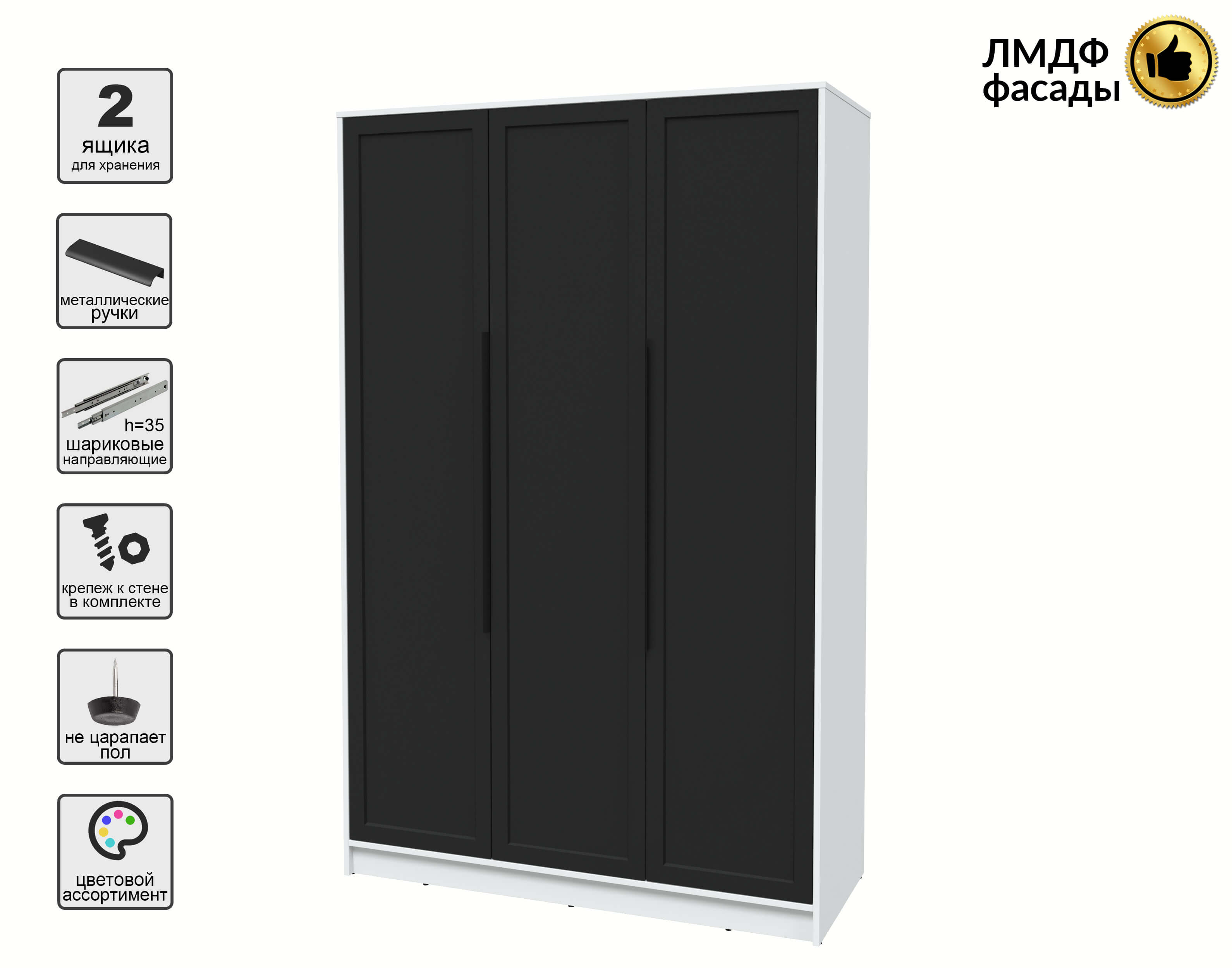 Шкаф распашной Тренд КТ-Ш3 (Белый платинум ЛДСП/ Черный ЛМДФ) Ш1360 В2128 Г547